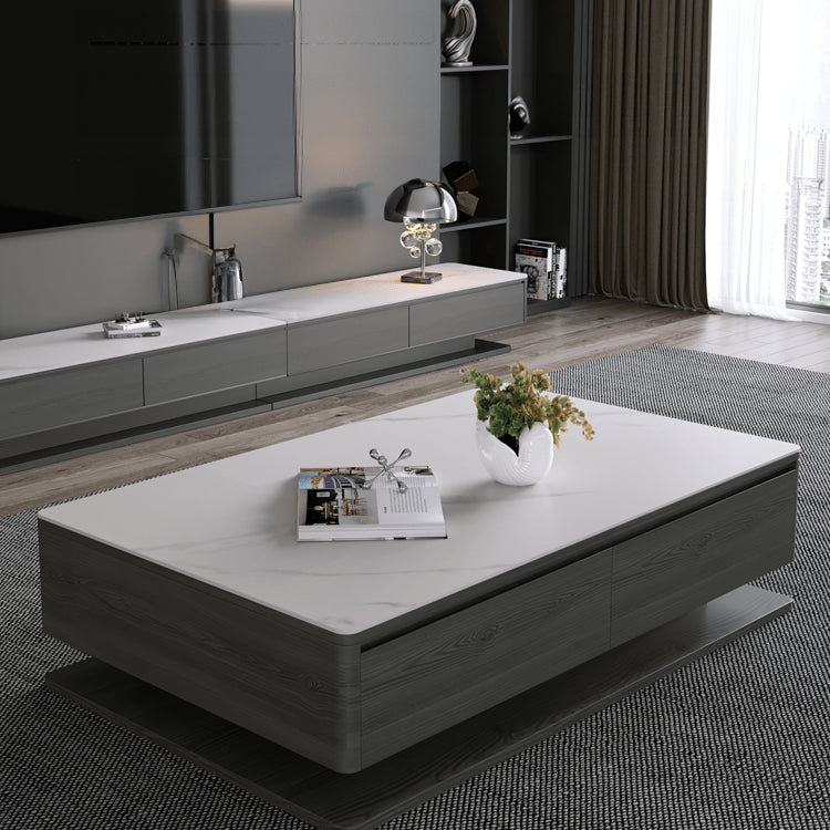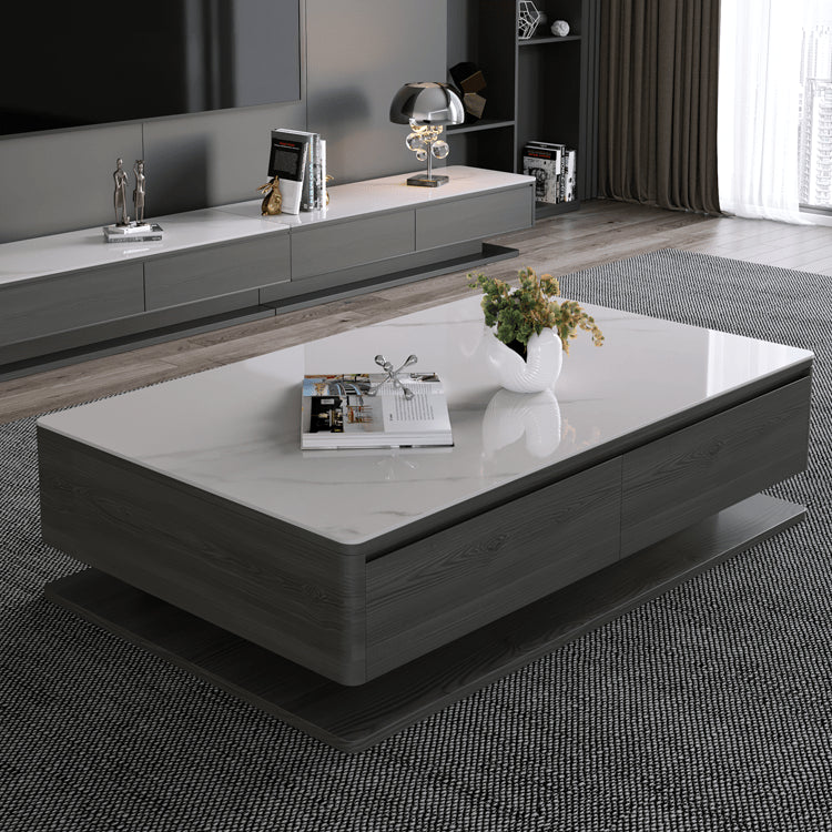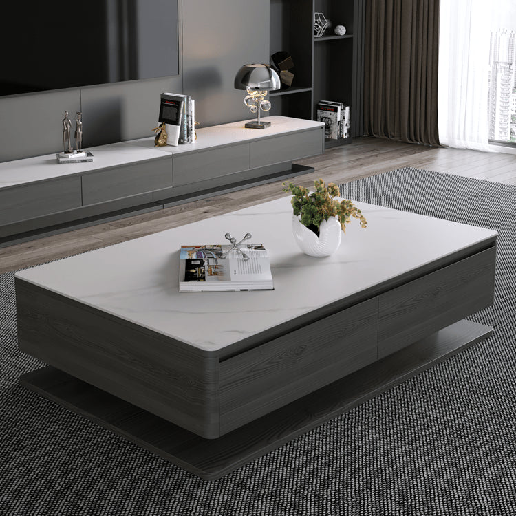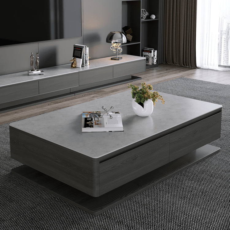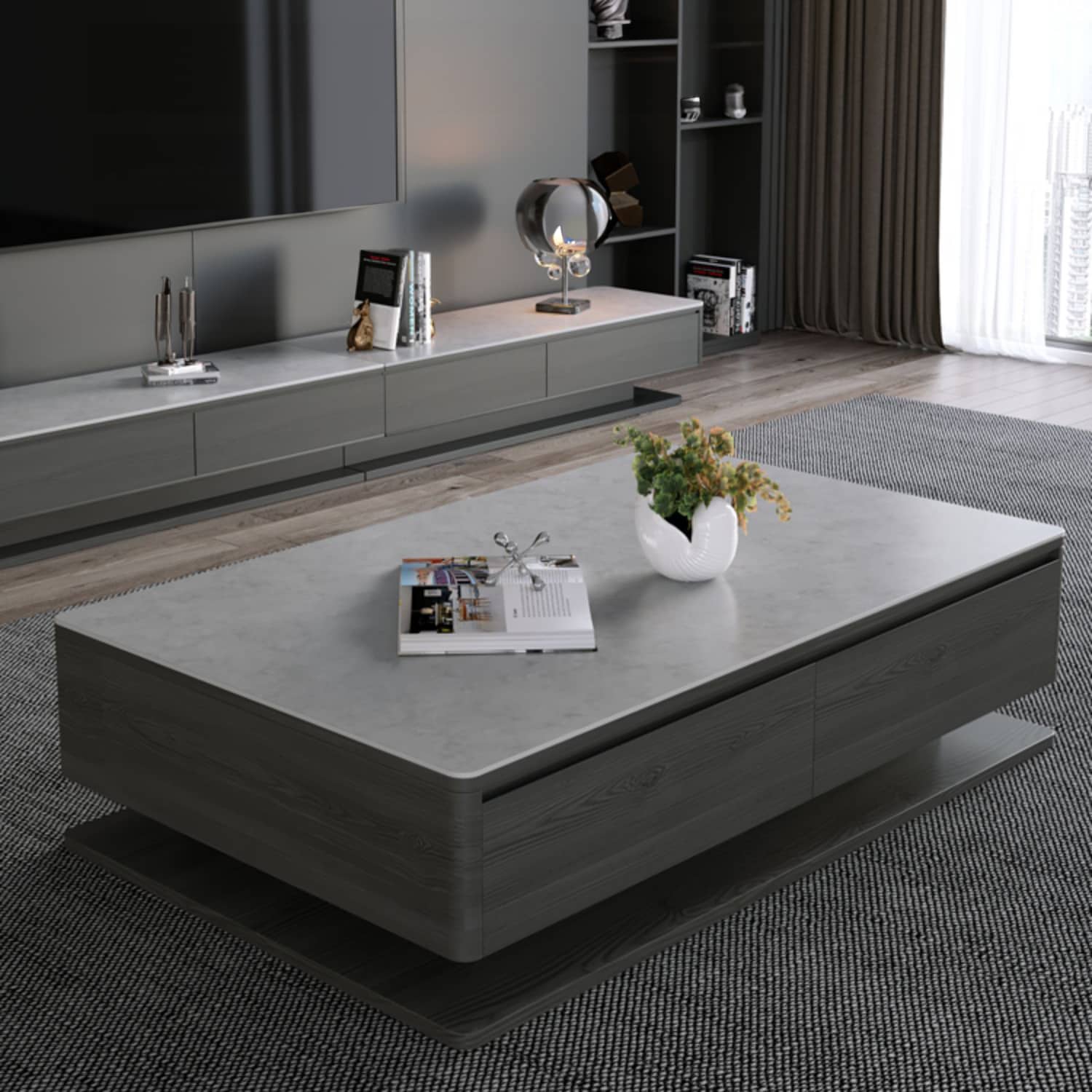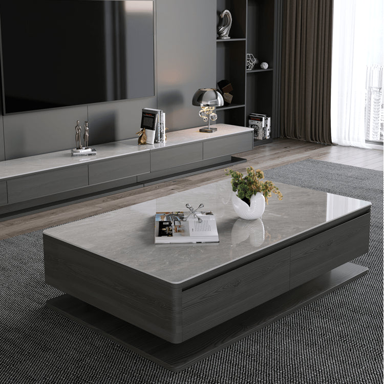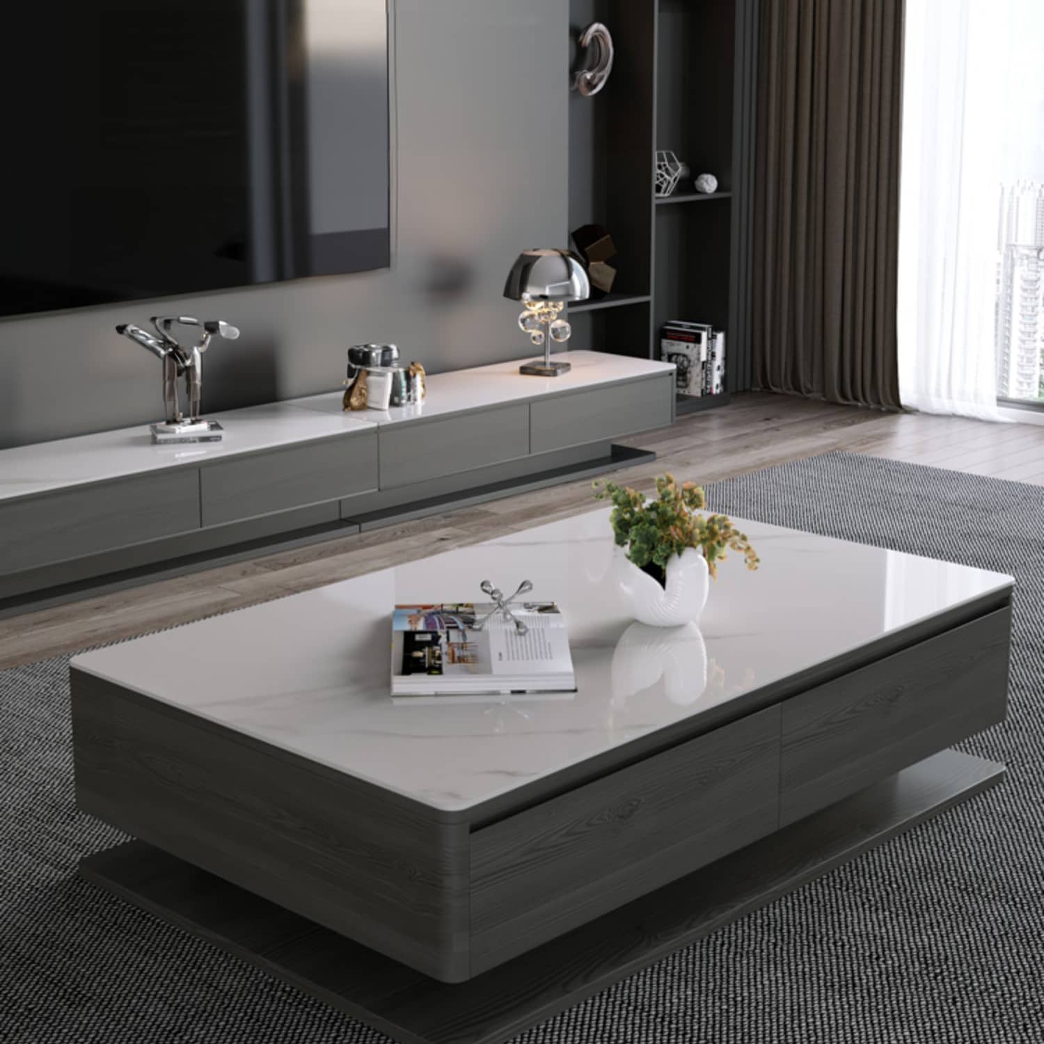 Elegant Tea Table with Sintered Stone Top and Pine Multi-Layer Board Base faml-301