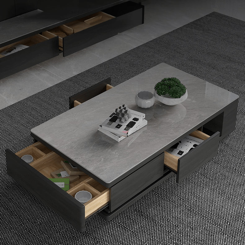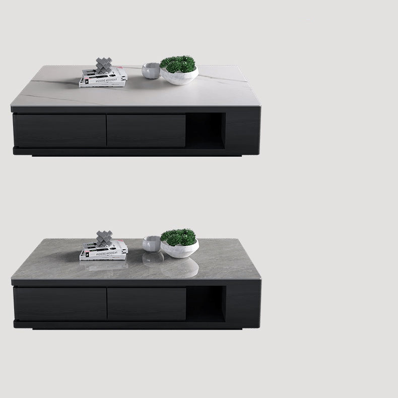 Modern White & Grey Marble Tea Table with Pine Wood and Metal Frame faml-696