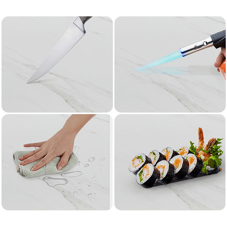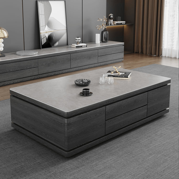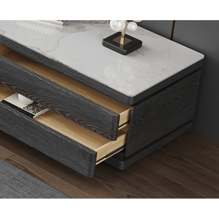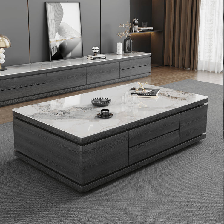 Modern White Glossy Tea Table with Grey Matte Marble and Pine Wood Accents faml-698