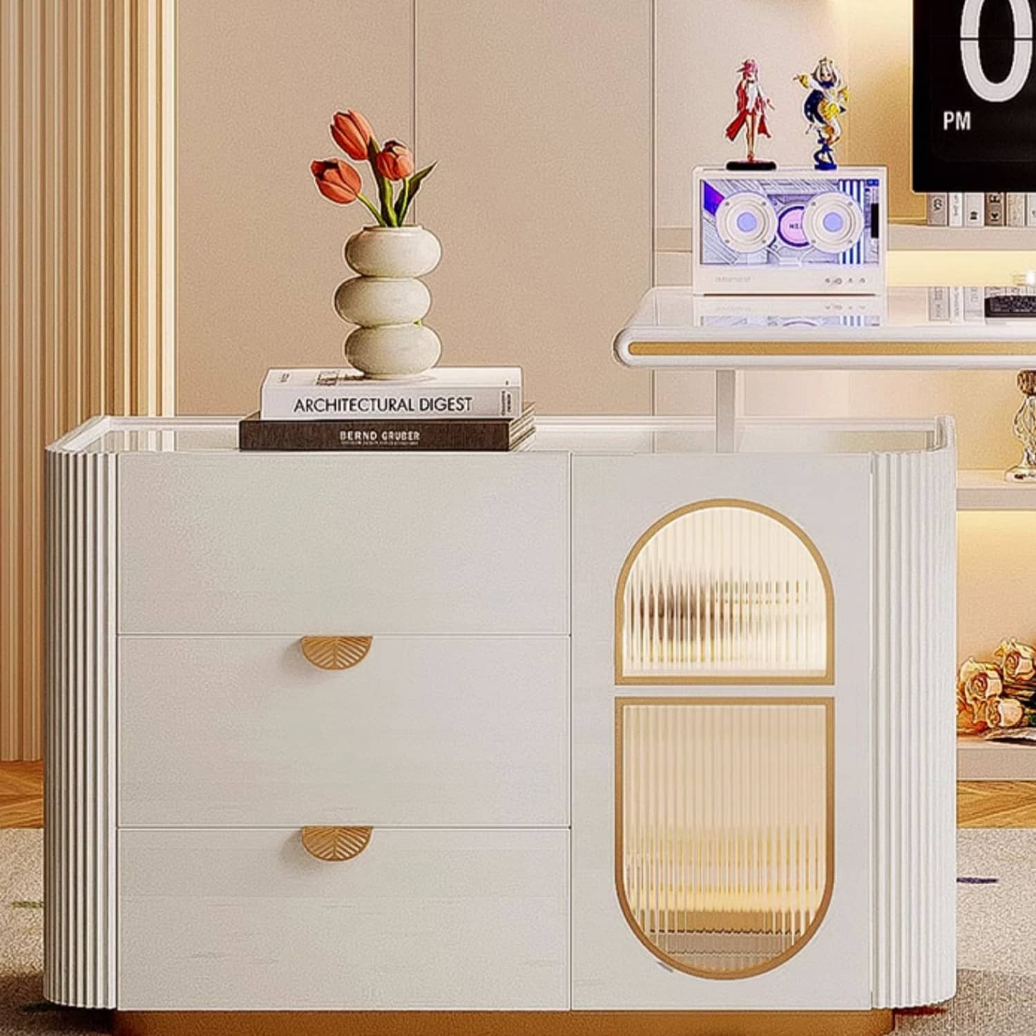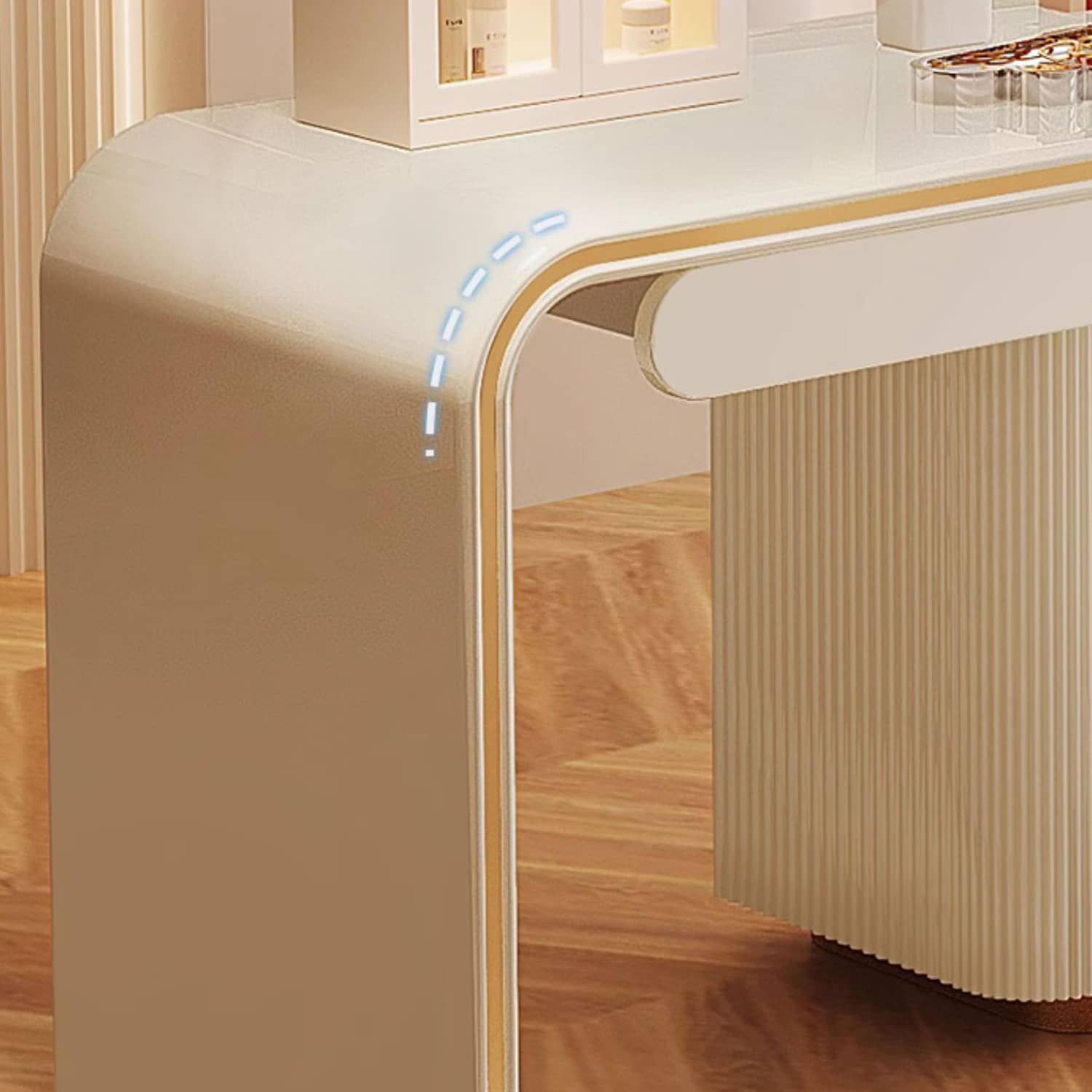 Modern Beige Laminated Wood Table with Glass Top - Stylish Home Furniture fbby-1376