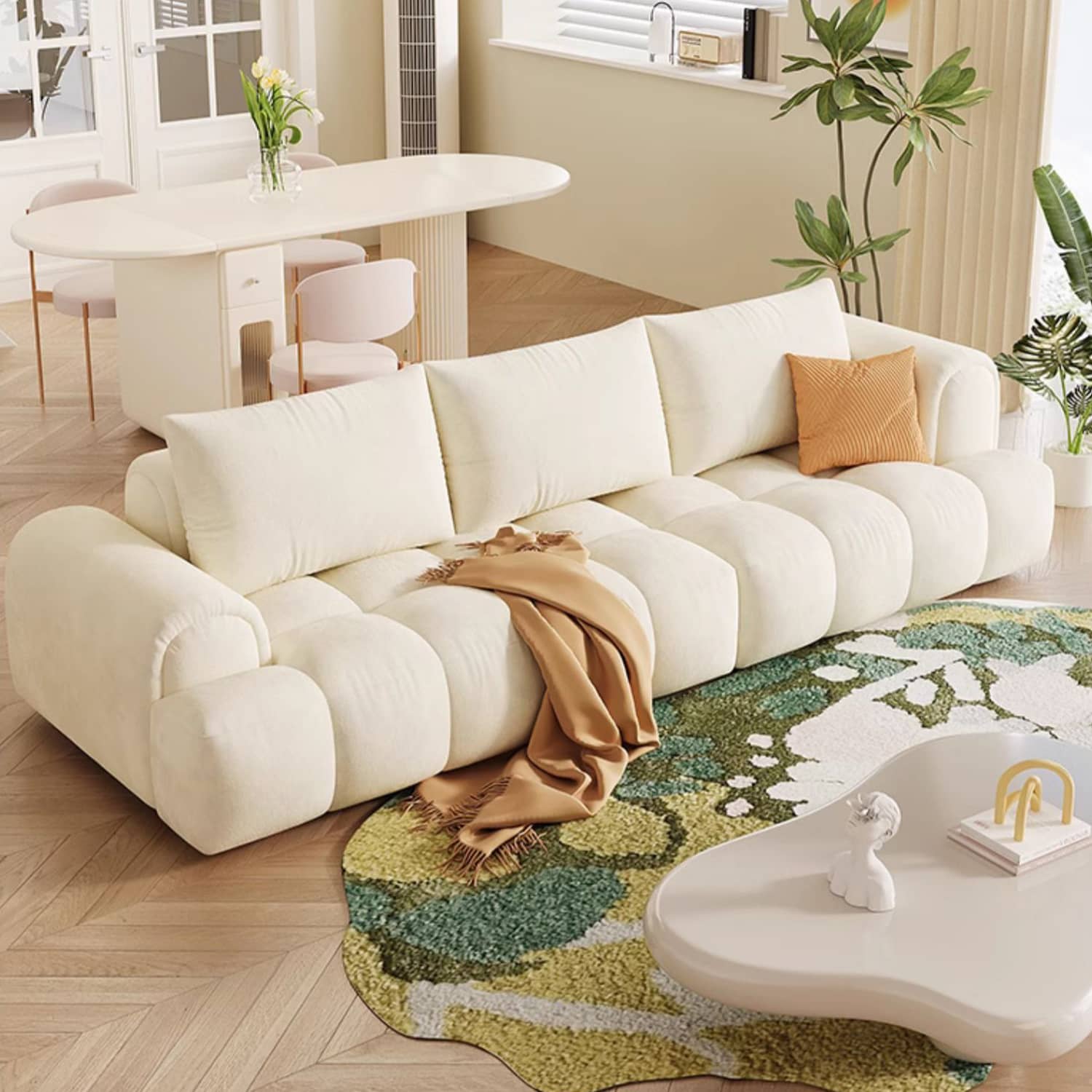 Elegant Beige & Brown Sofa with Pine Wood Frame and Luxurious Faux Leather Upholstery fbby-1386