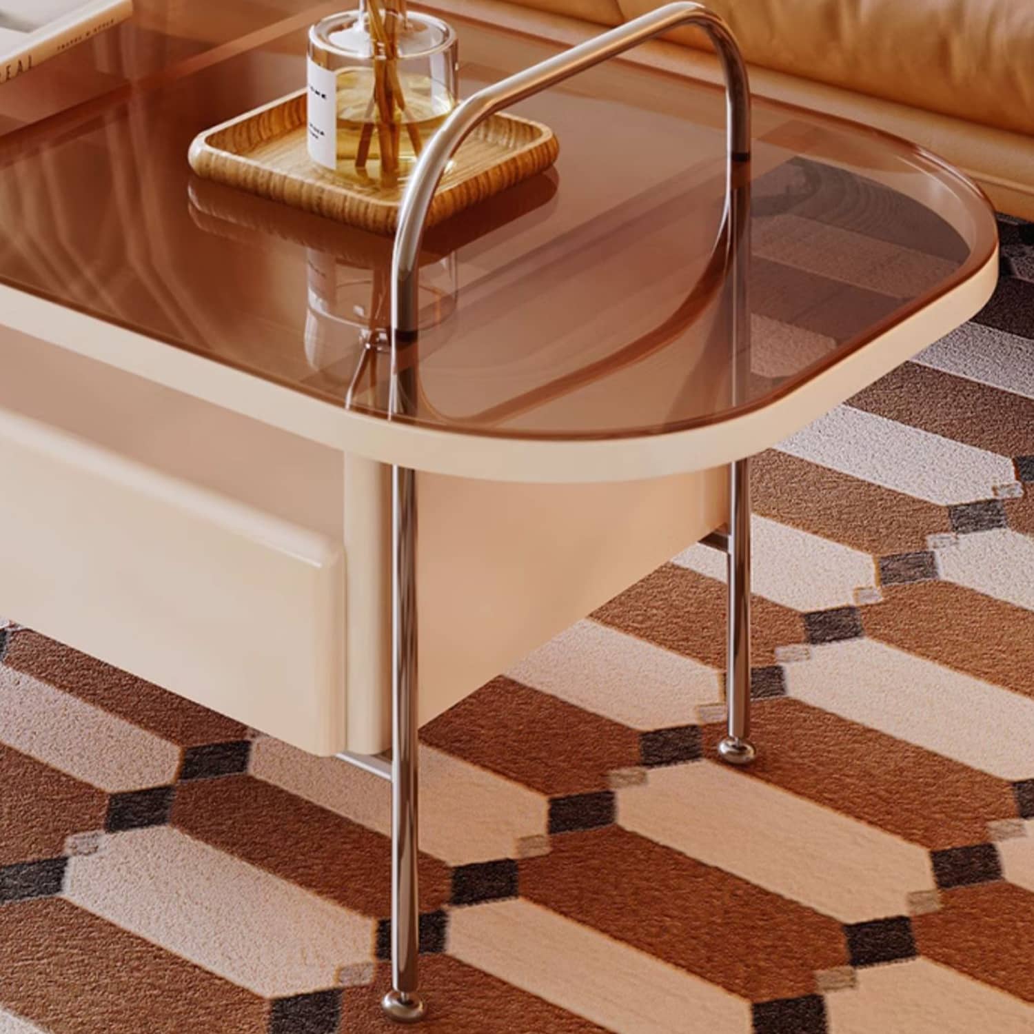 Modern Beige Laminated Wood Tea Table with Stainless Steel Frame fbby-1391