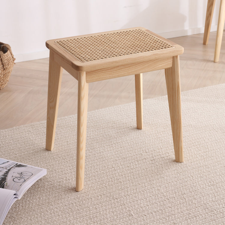 Crafted Ash Wood & Rattan Stool - Premium Natural Finish fcf-1475