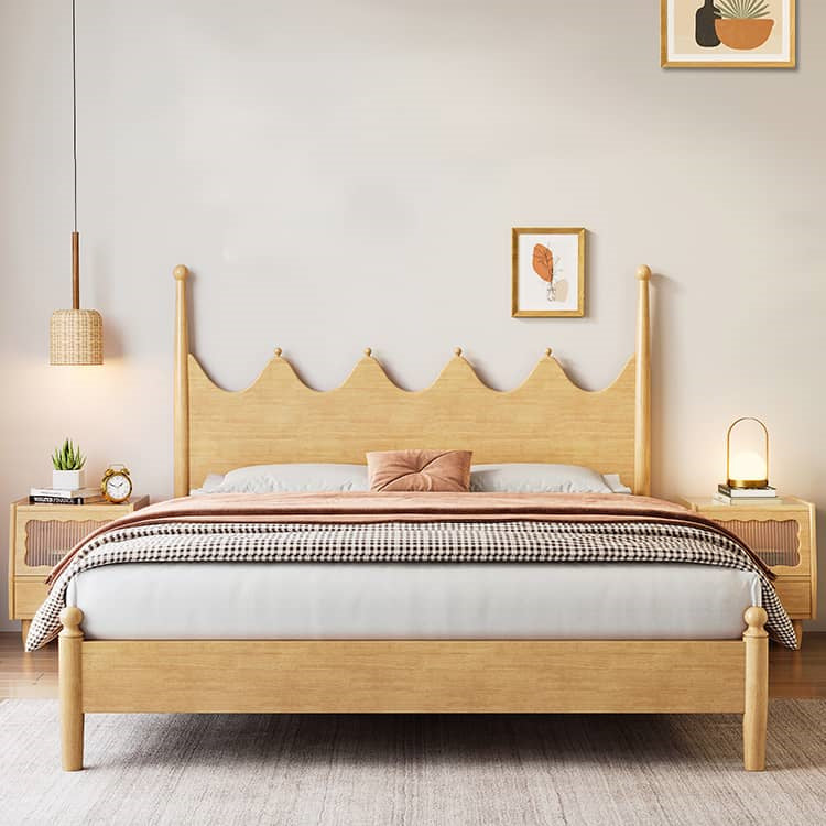 Stylish Natural Light Brown Rubber & Pine Solid Wood Bed Frame fcf-309