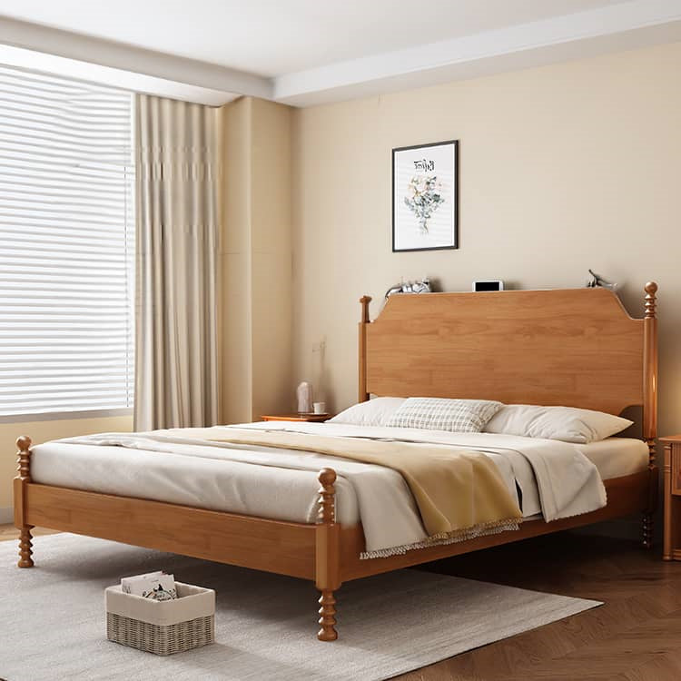 Elegant Light Brown Rubber Wood & Pine Wood Bed Frame fcf-316