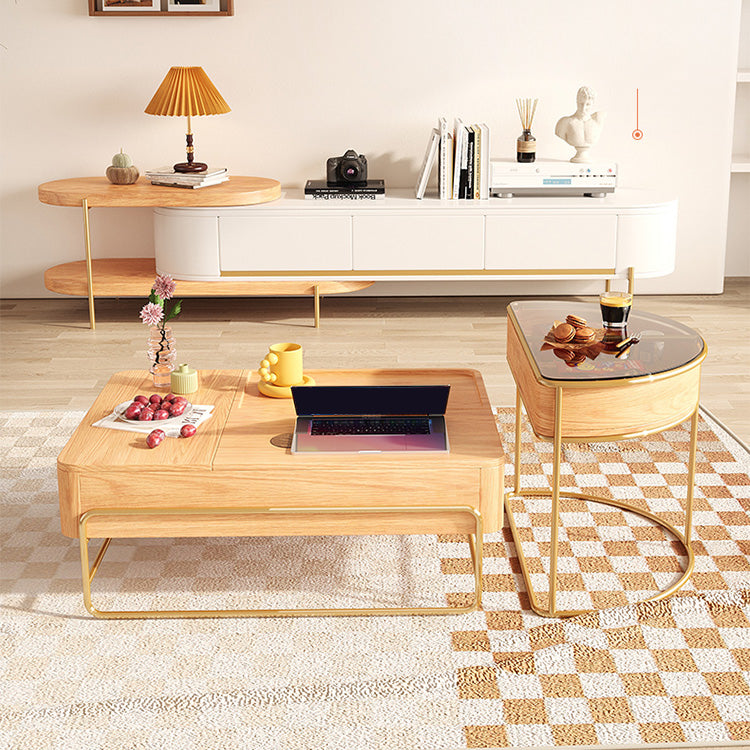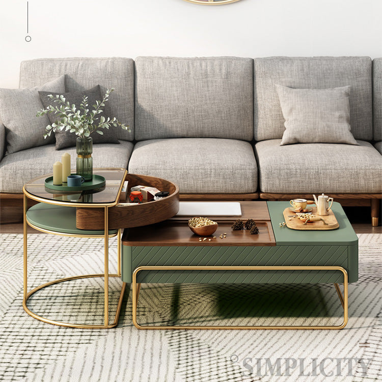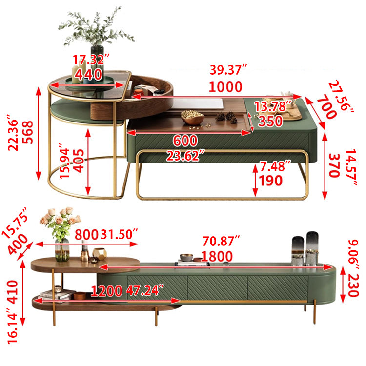 Elegant Solid Wood Tea Table with Green and White Glass Top fjnl-1587