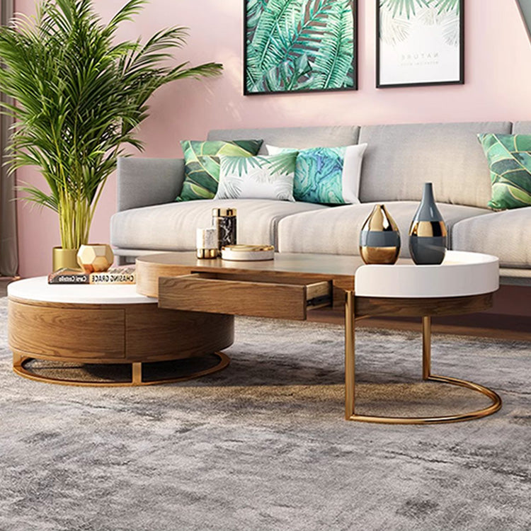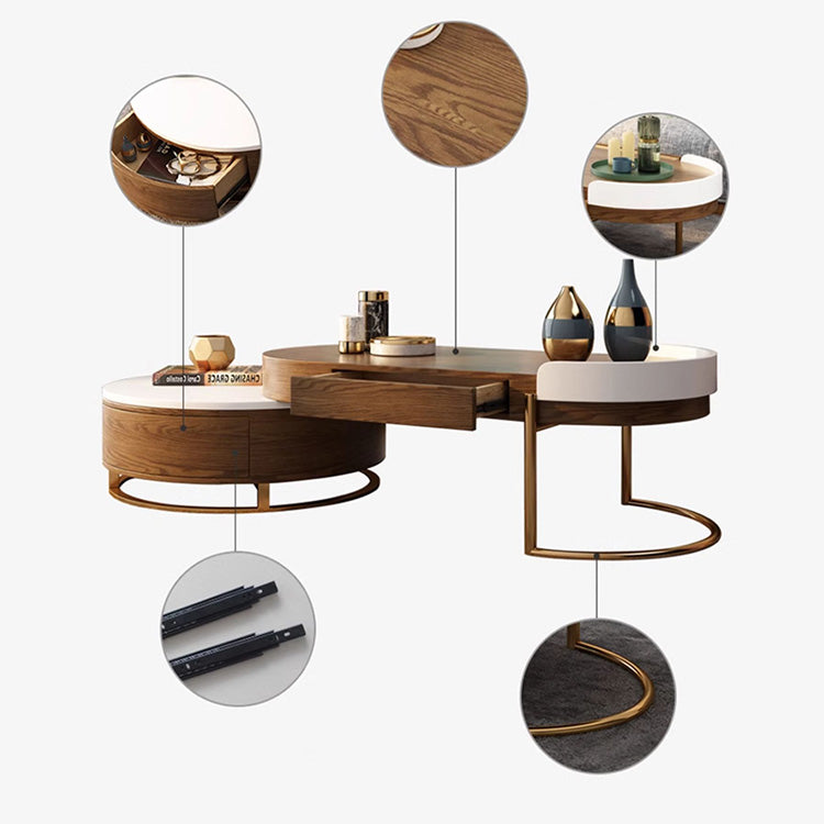 Elegant White & Brown Solid Wood Tea Table - Natural Finish fjnl-1593