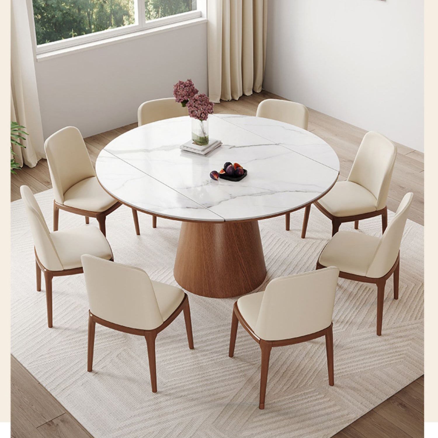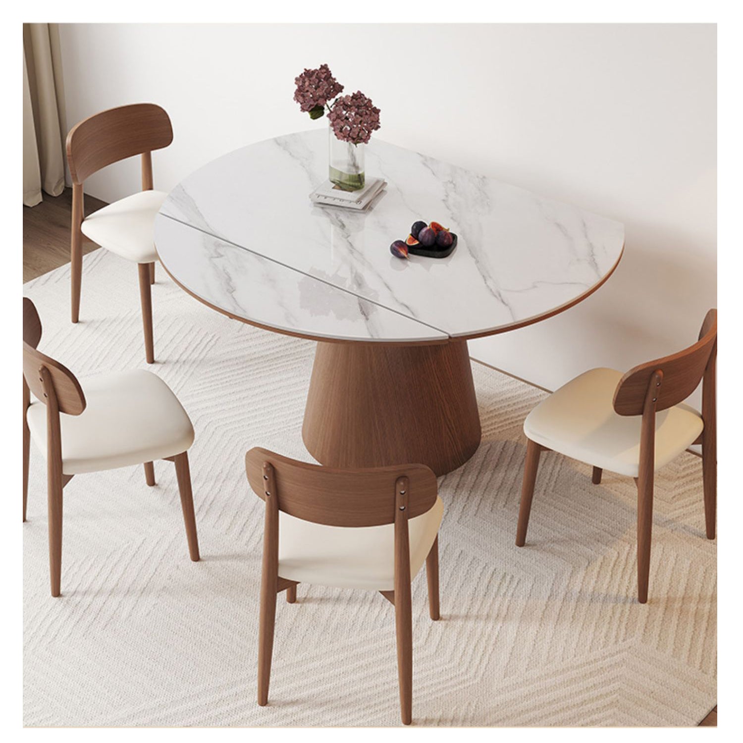 Modern Glossy White Sintered Stone Table with Oak Wood Base - Elegant Home Decor fmbs-004