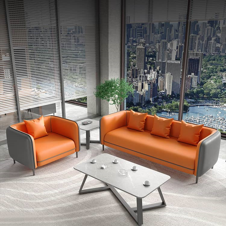 Modern Orange & Gray Faux Leather Sofa with Pine Wood Frame fsj-1030
