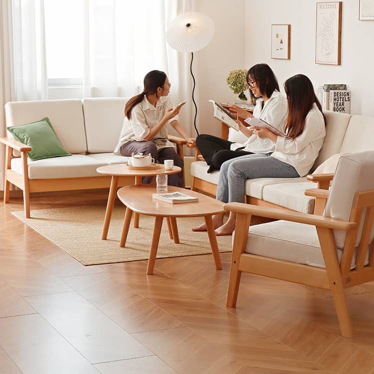 Luxurious White Leathaire Sofa with Natural Beech Wood Frame fslmz-1112