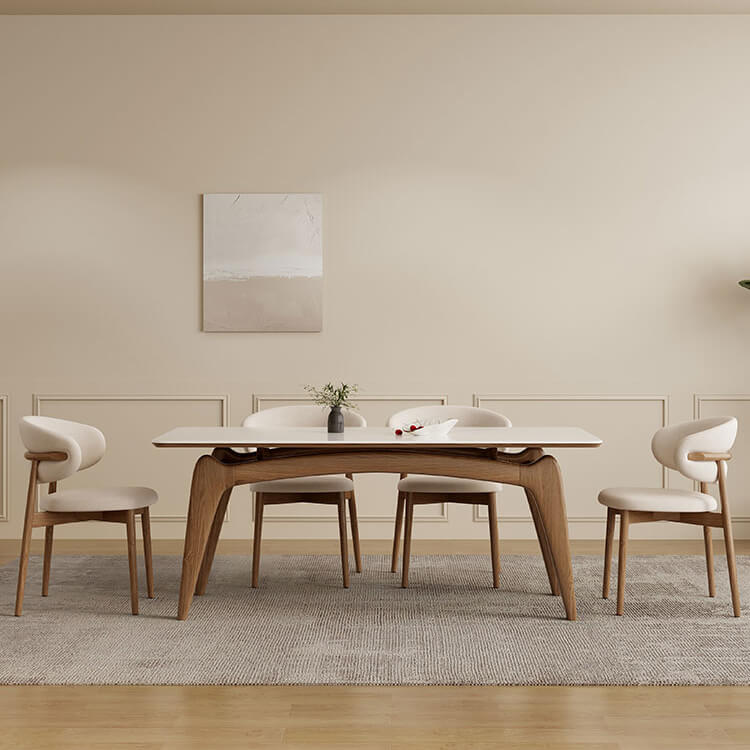 Stylish White Sintered Stone Table with Ash Wood Multi-Layer Board Top fsm-310