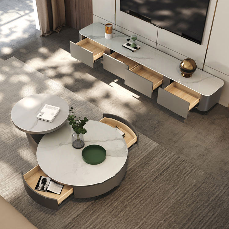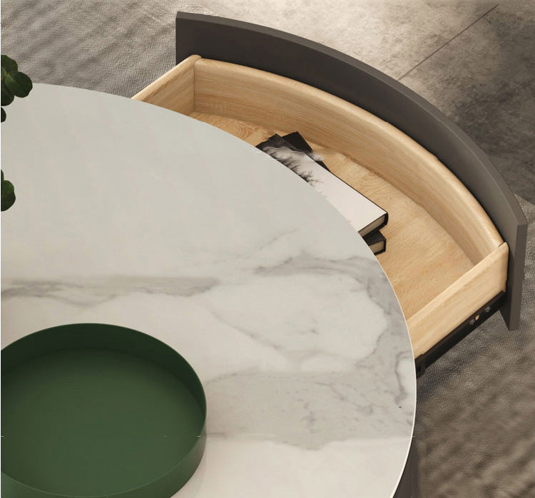 Elegant White Tea Table with Sintered Stone and Solid Wood Particle Board fsm-970
