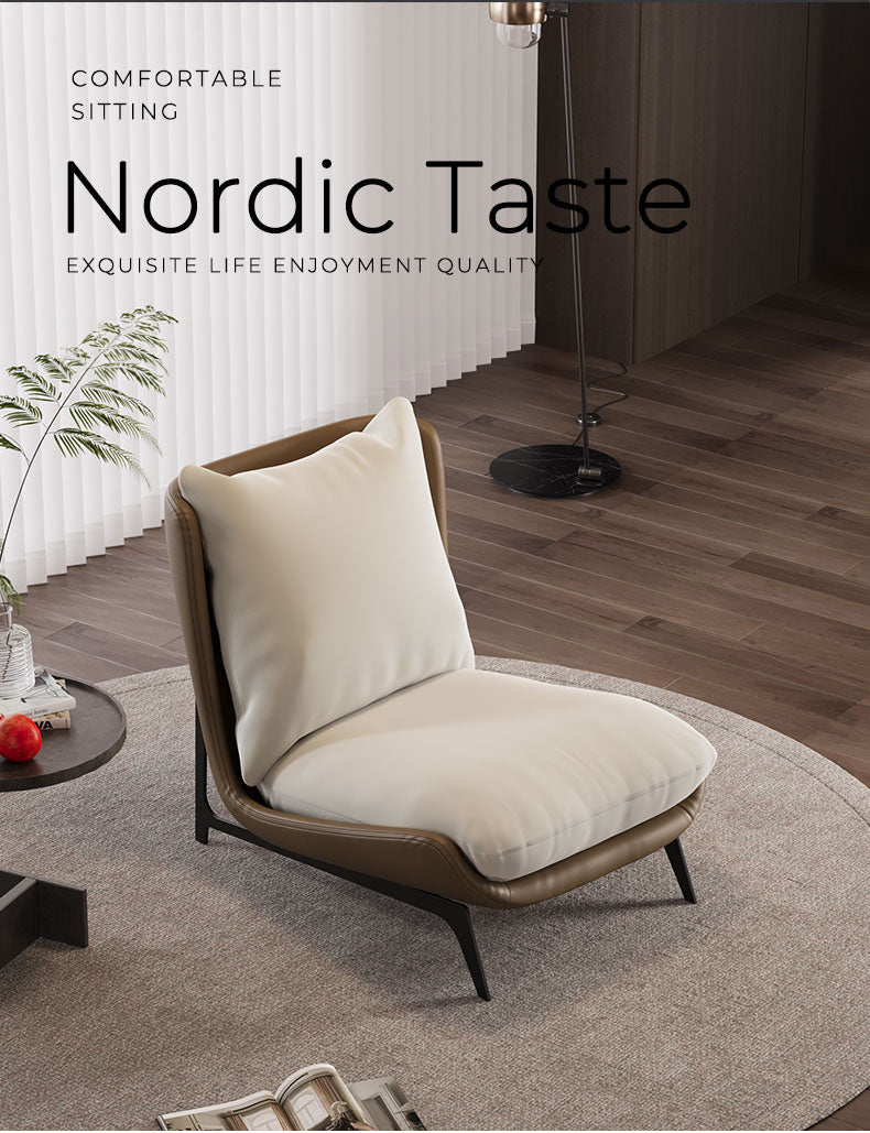 Stylish Brown and White Chair with Orange Accents - Stainless Steel Frame, PU Leather, and Silicon Filling fsmy-453