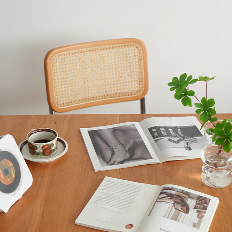 Elegant Natural Wood Table with Cherry Finish and Sleek Metal Accents fyx-835