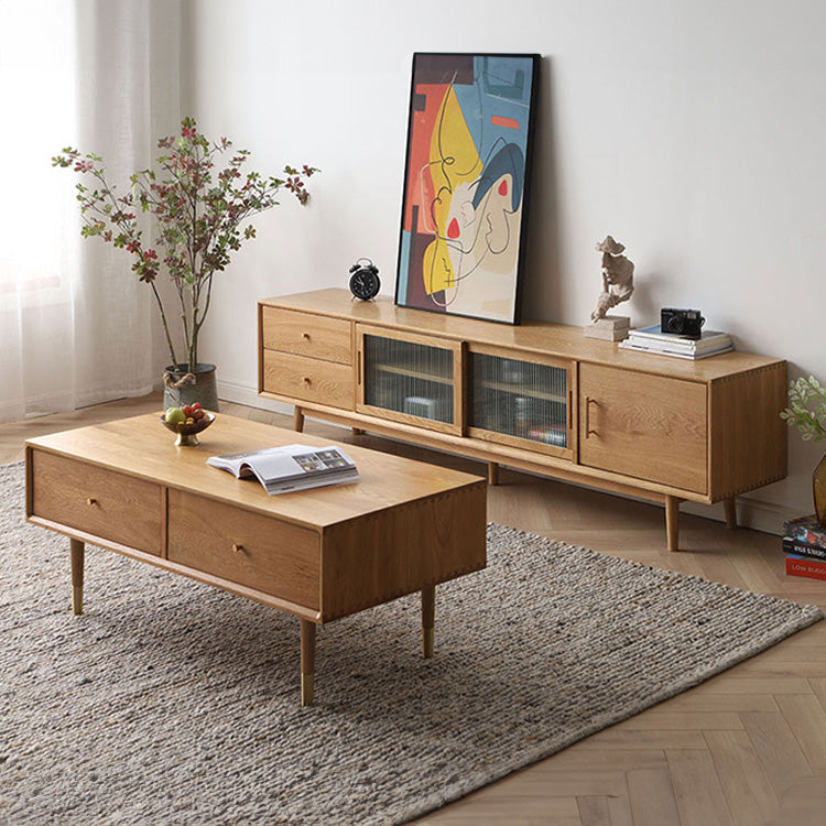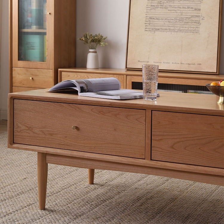 Elegant Natural Wood Tea Table in Oak, Paulownia, and Copper Cherry Finishes fyx-866