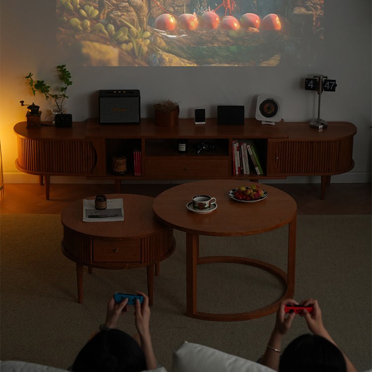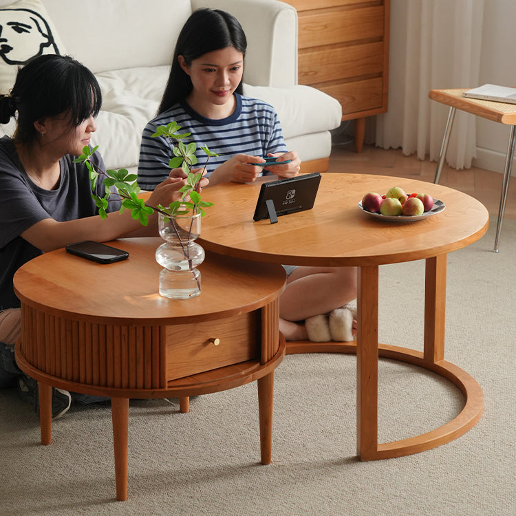 Stunning Natural Wood Tea Table | Cherry & Oak Wood with Copper Accents fyx-870