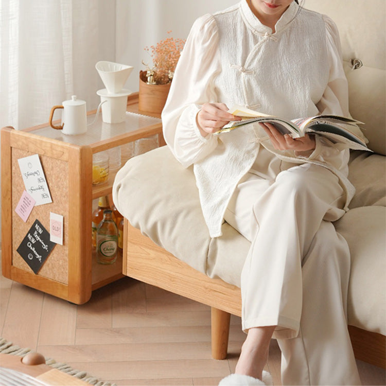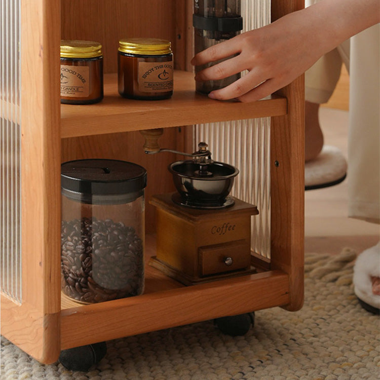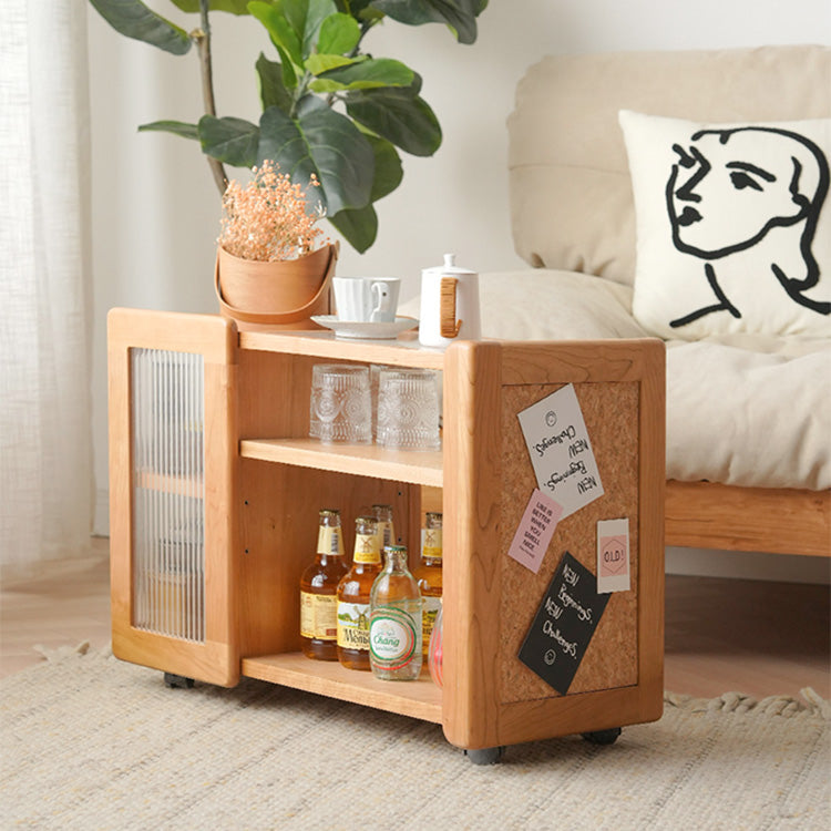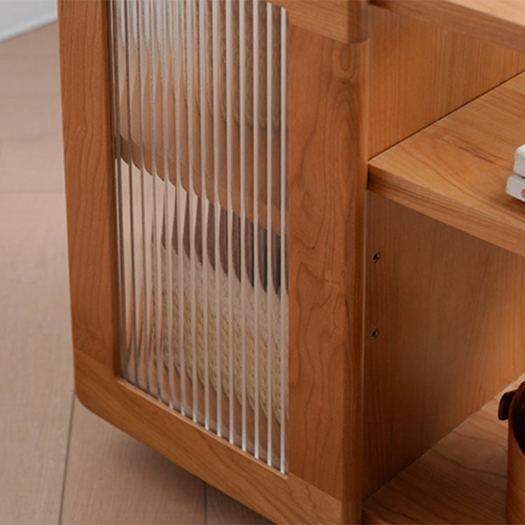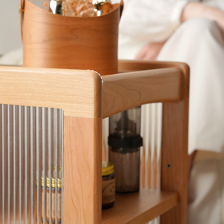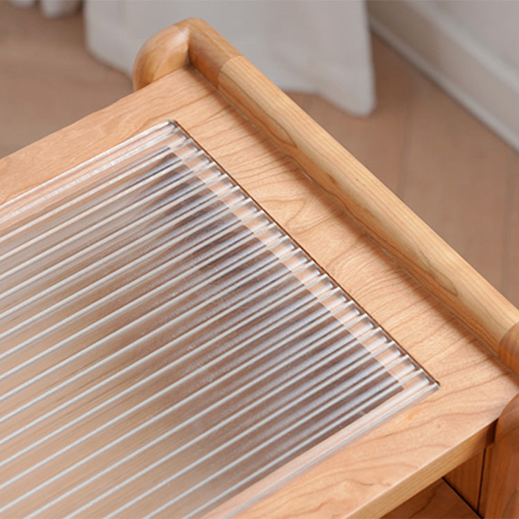Stylish Cherry Wood Tea Table with Tempered Glass Top – Elegant Natural Finish fyx-878