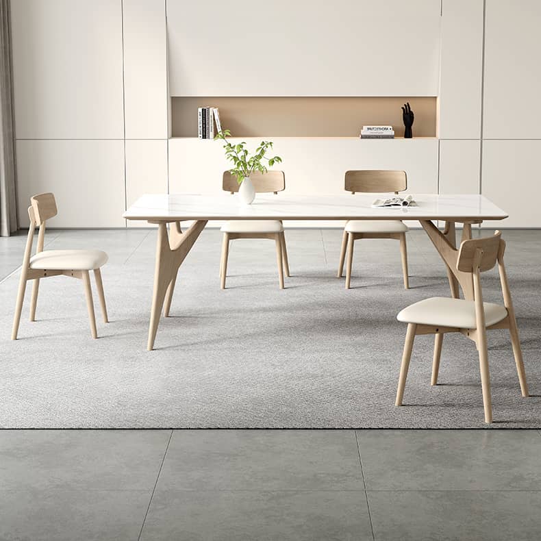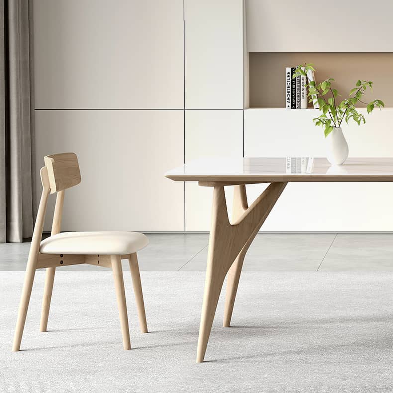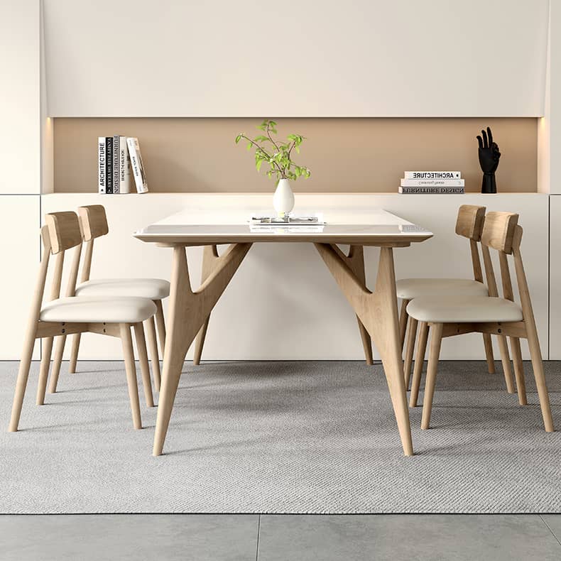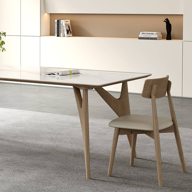 Elegant Table with Sintered Stone and Ash Wood - Modern Multi-Layer Design in White, Black, and Gray hagst-560