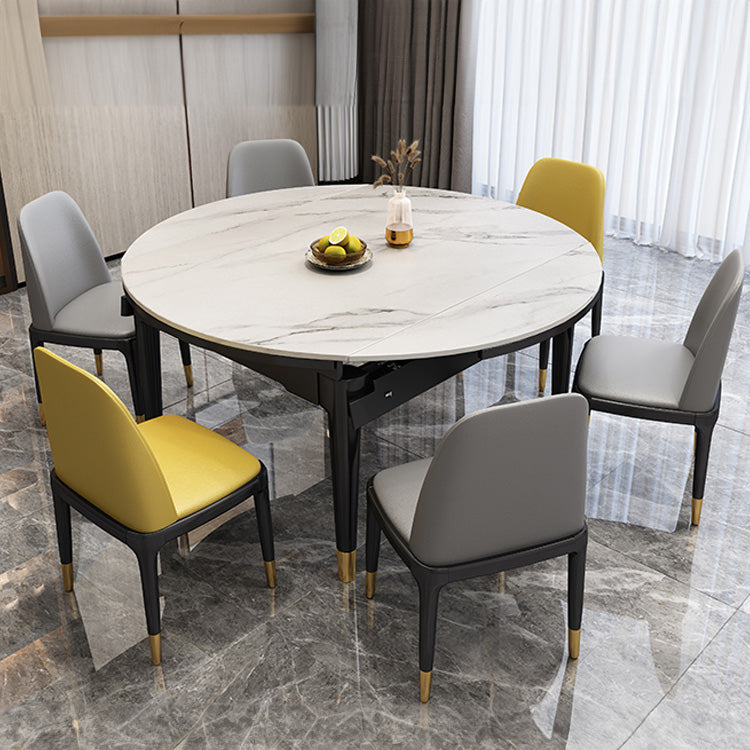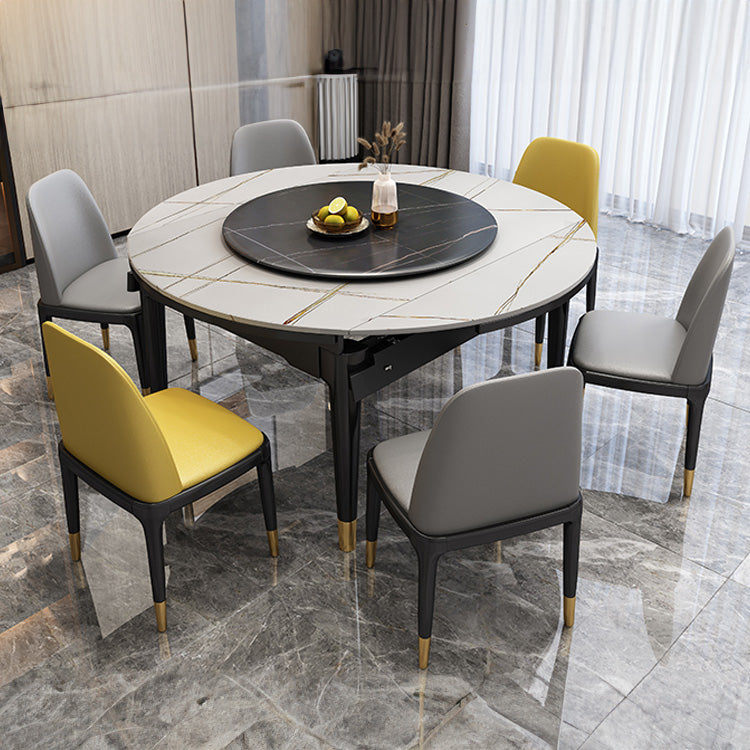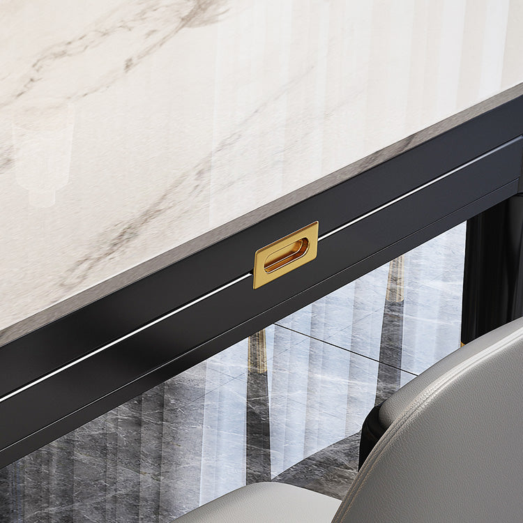 Stylish Gray-Black-White Sintered Stone Table with Durable Rubber Wood Base hglna-1462