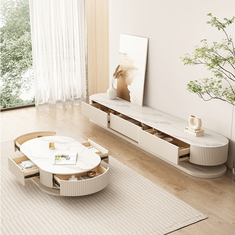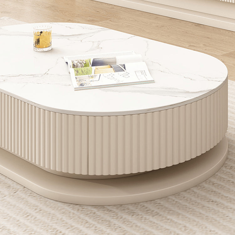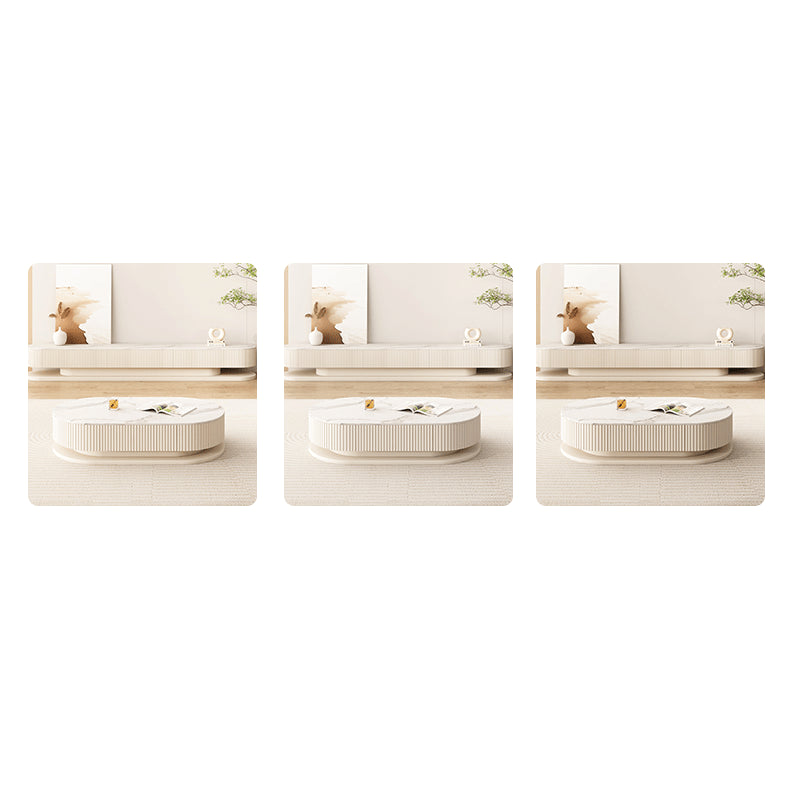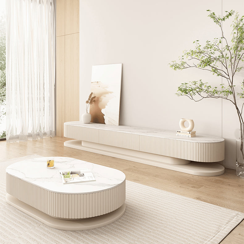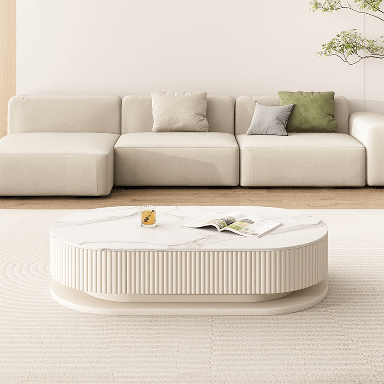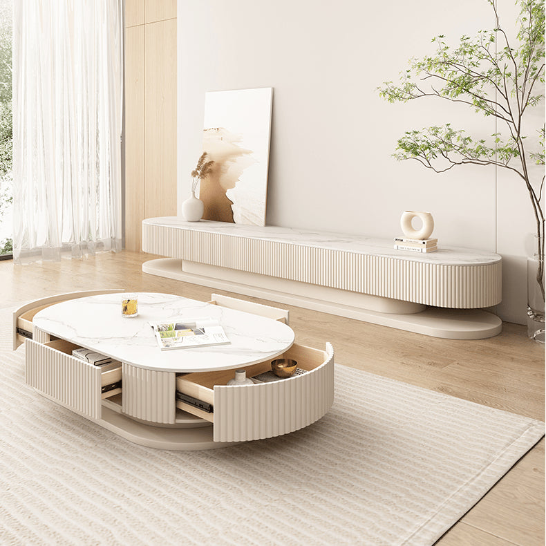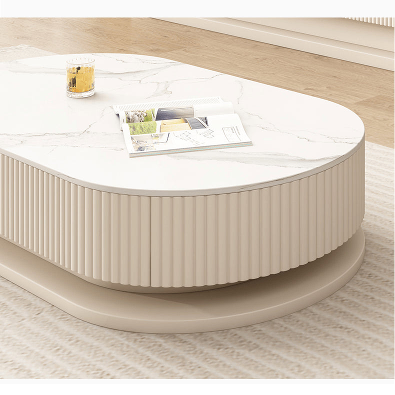 Elegant Sintered Stone & Solid Wood Tea Table - White & Beige hjl-1177
