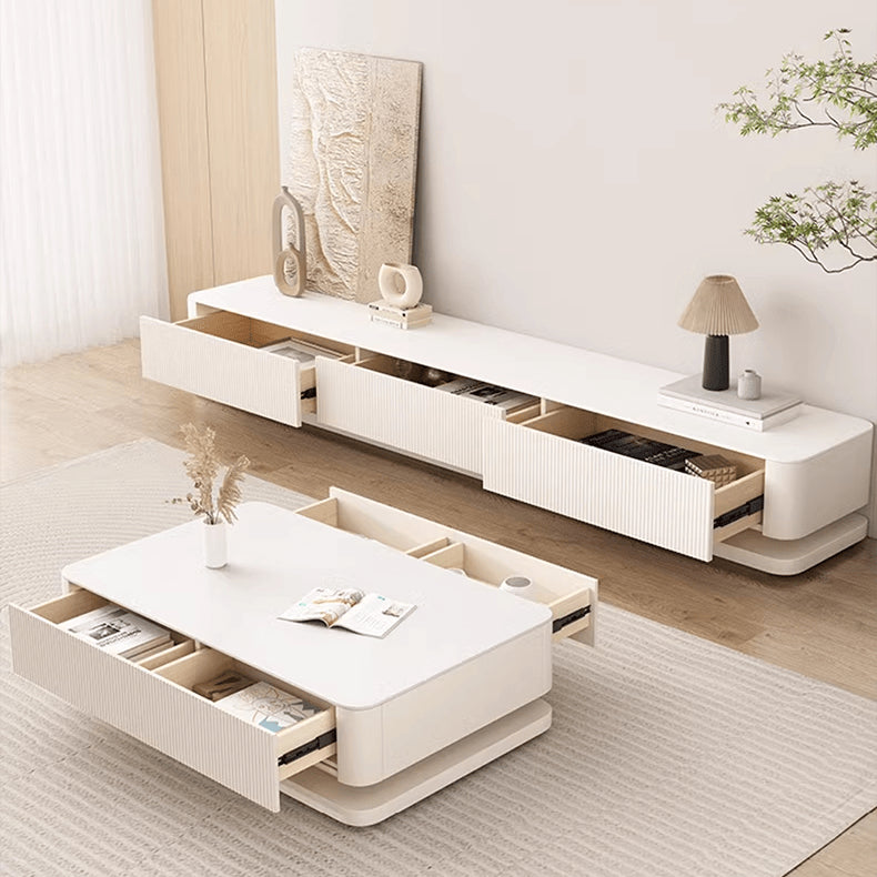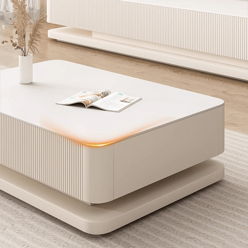 Elegant White and Beige Sintered Stone Tea Table for Modern Living Spaces hjl-1195