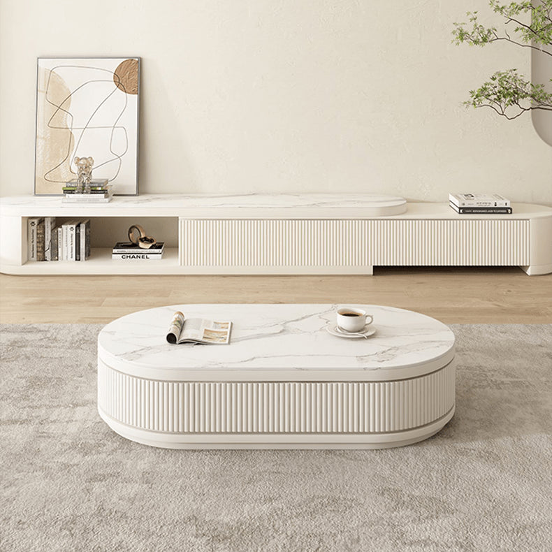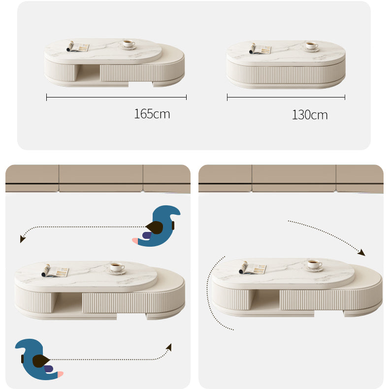 Elegant White Beige Sintered Stone Tea Table - Modern Design & Durable Finish hjl-1197