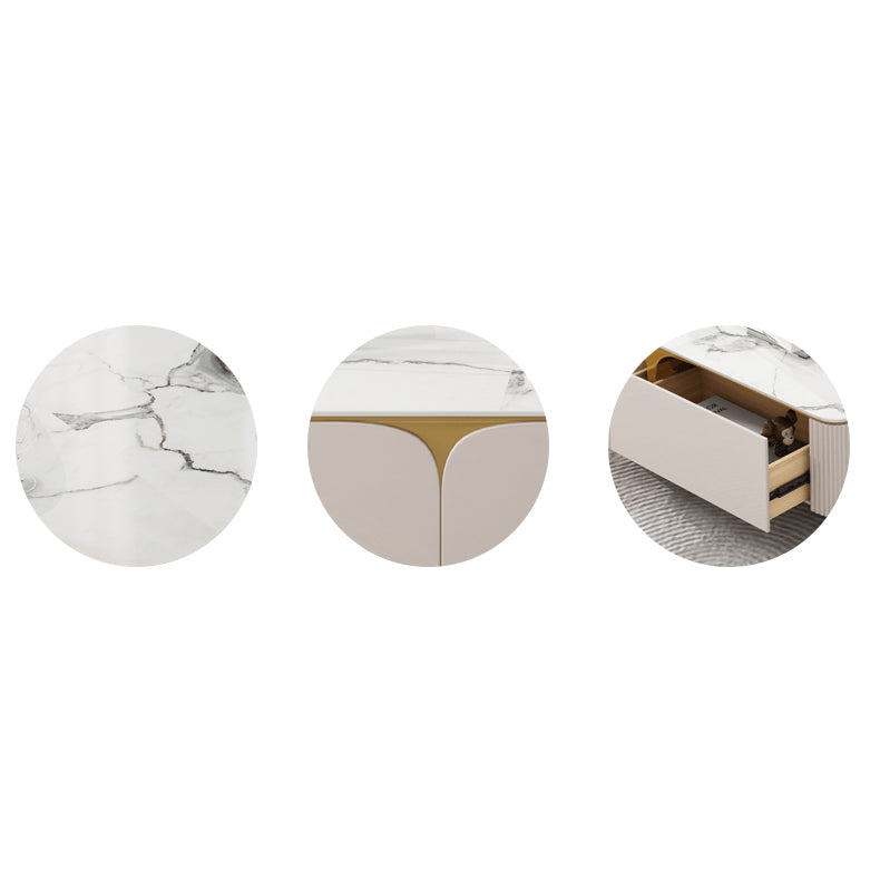 Luxurious White & Beige Sintered Stone Tea Table with Pine and Solid Wood Finish hjl-1205
