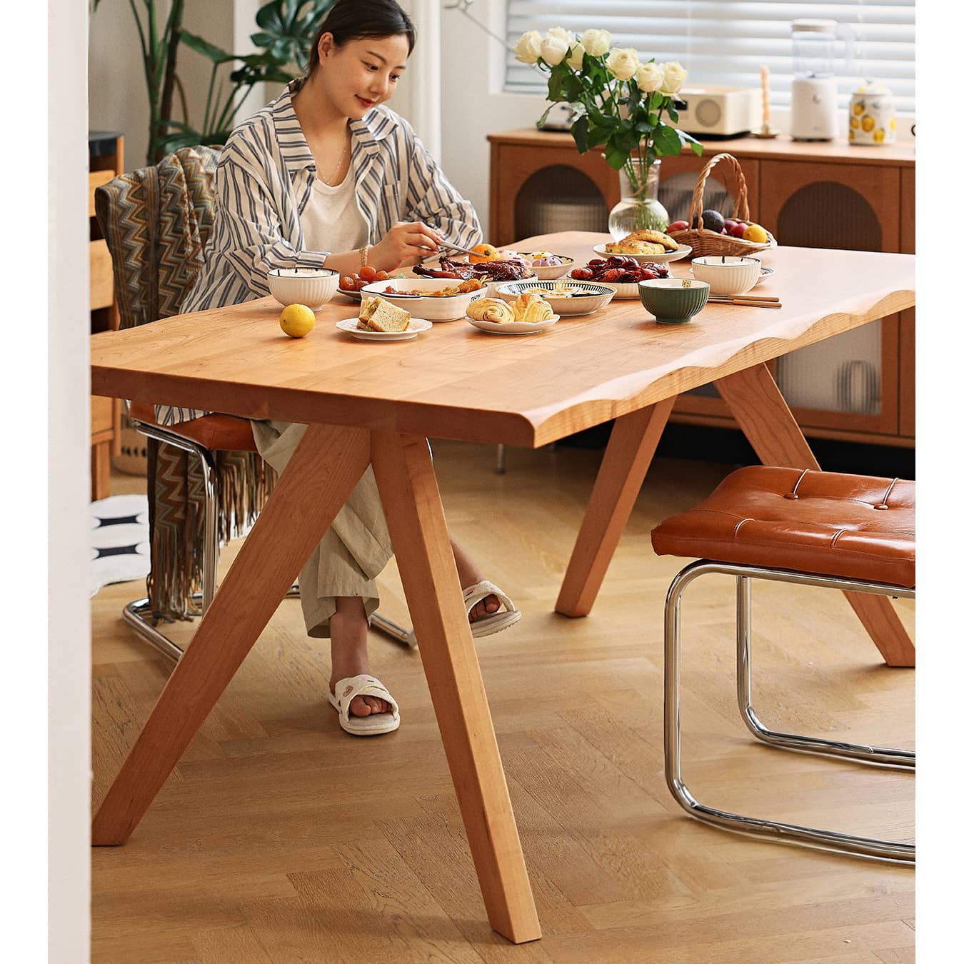 Premium Cherry Wood Natural Finish Table - Elegant Wooden Furniture hldmz-706