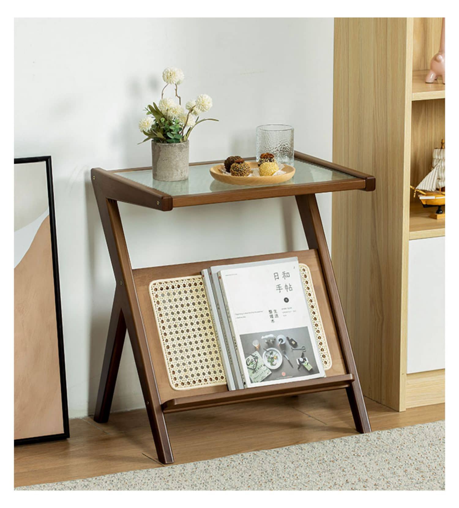 Elegant Natural Wood Tea Table with Reeded Glass – Brown, Grey & Dark Bamboo Styles hsl-76