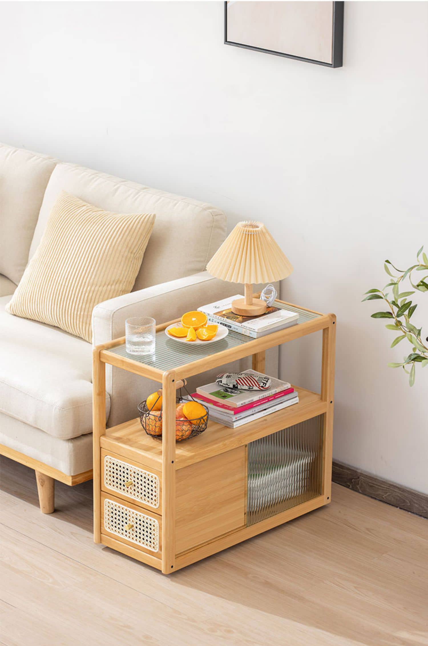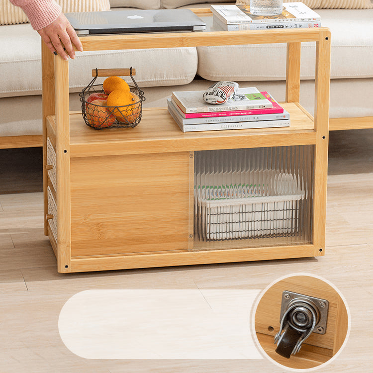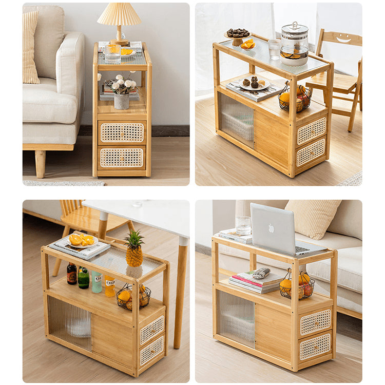 Elegant Natural Wood Tea Table with Reeded Glass and Dark Grey Bamboo Accents hsl-82