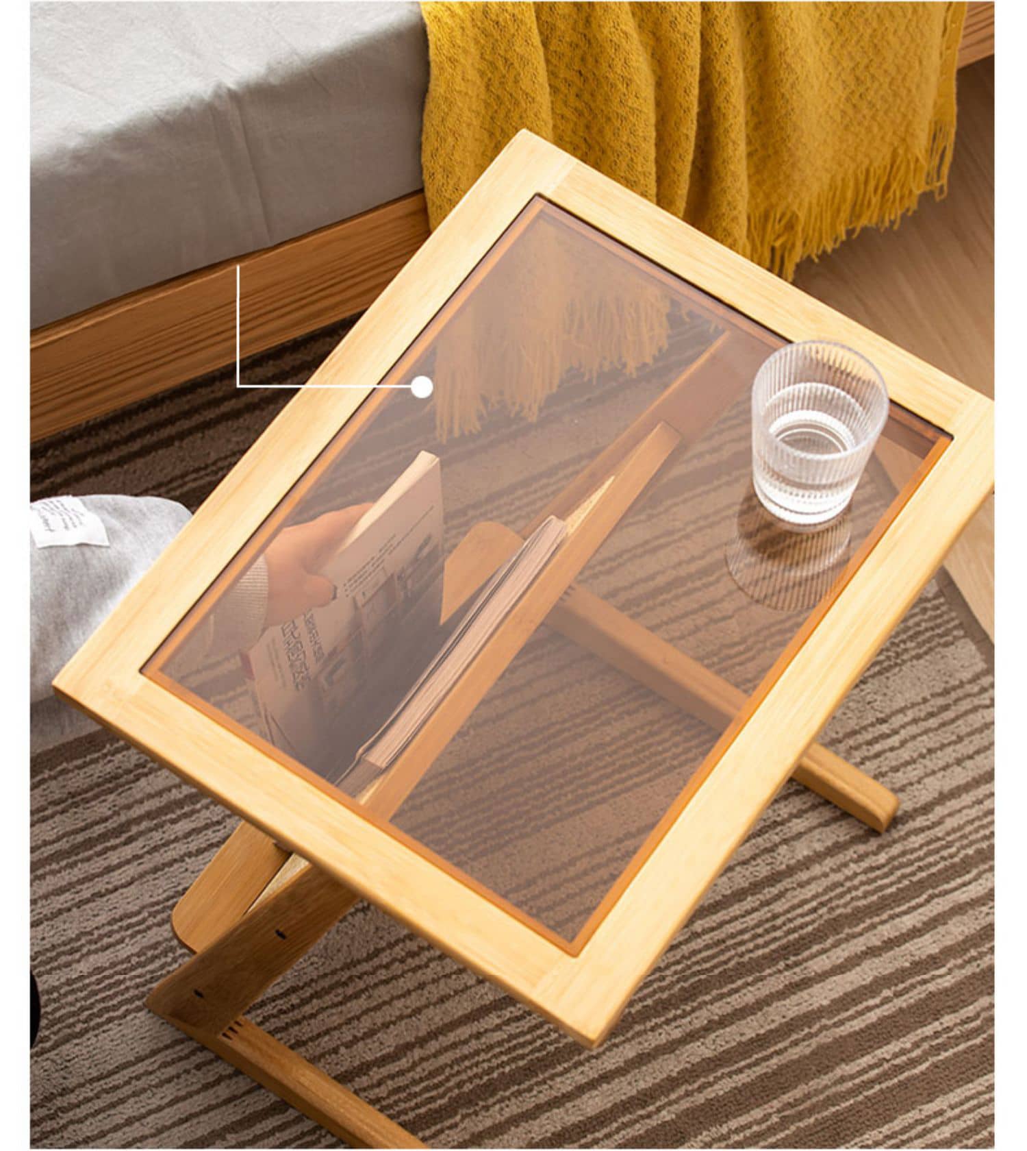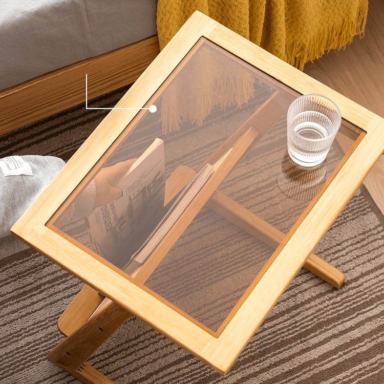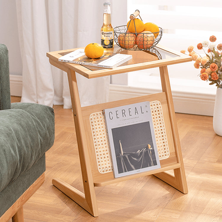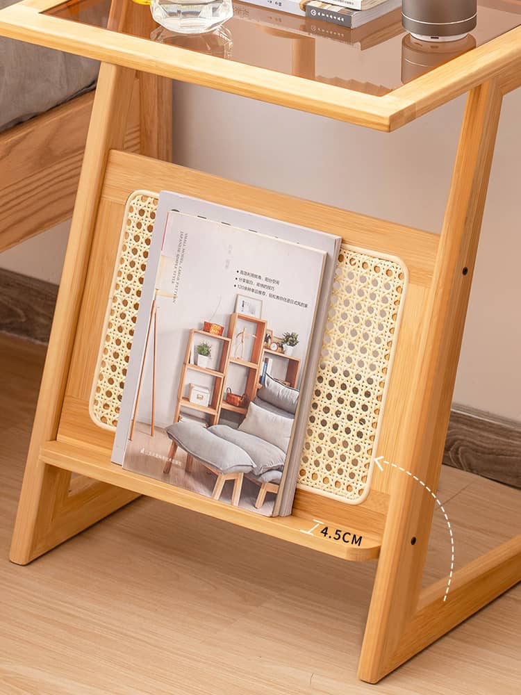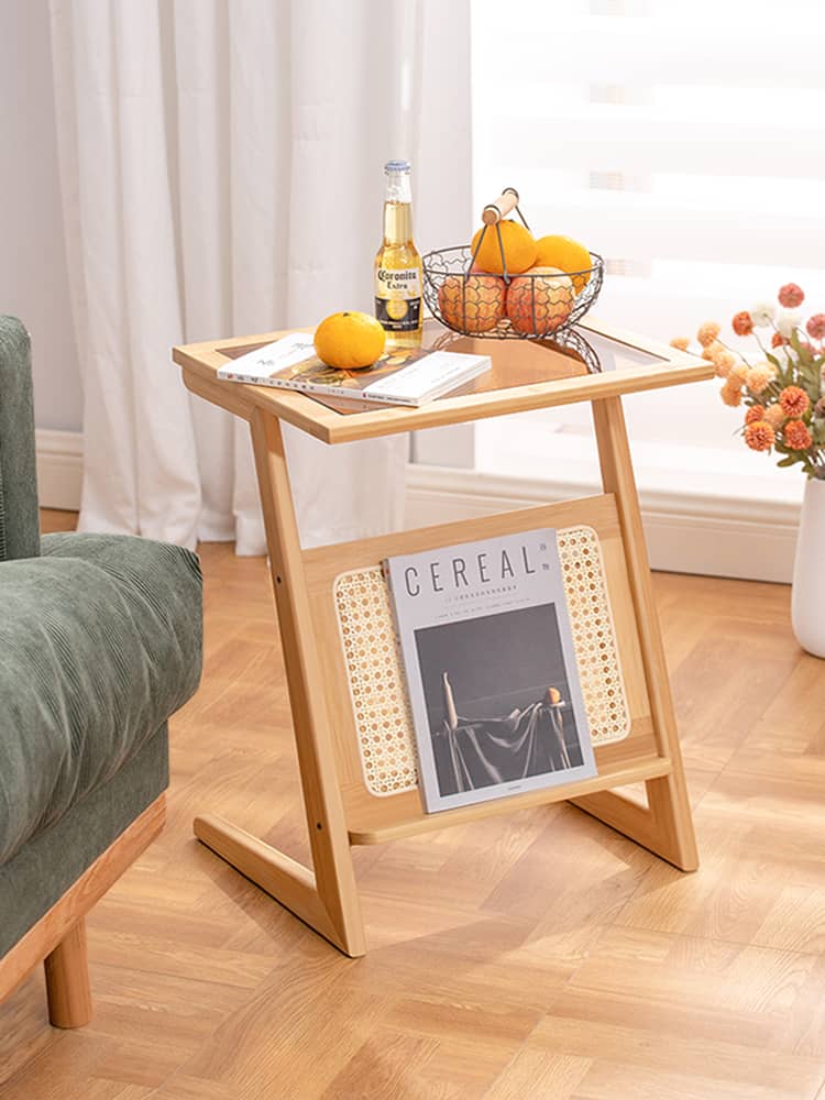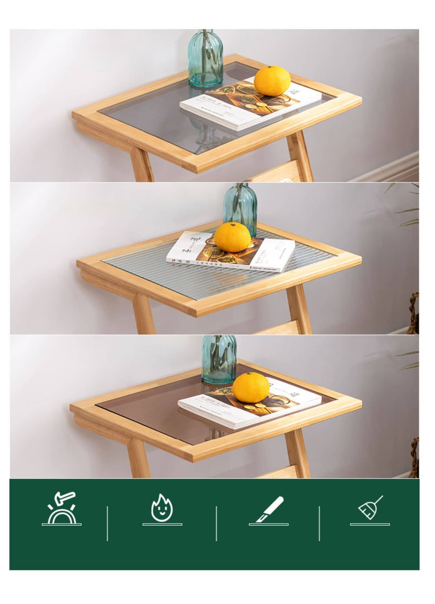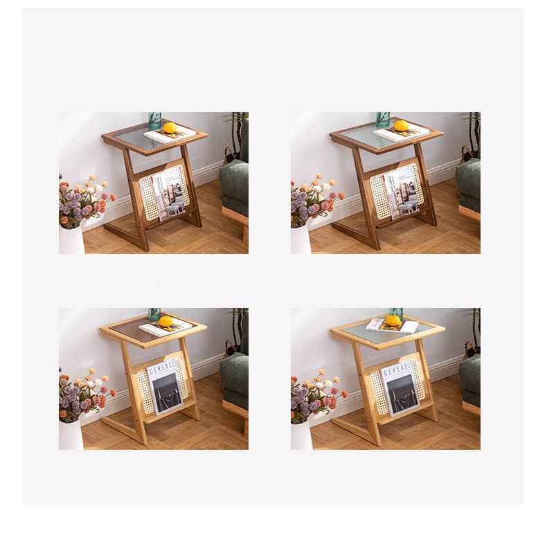 Stunning Natural Wood Tea Table with Intricate Bamboo and Rattan Weaving - Reeded Glass Top in Elegant Brown Grey hsl-84