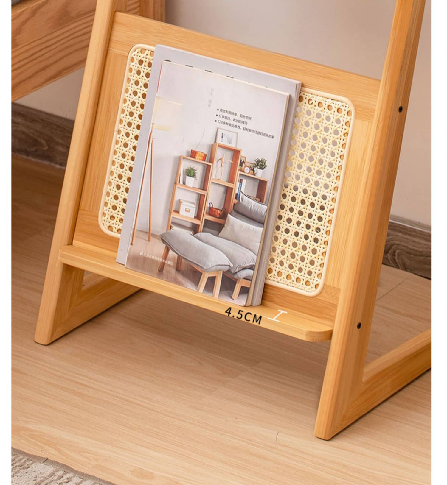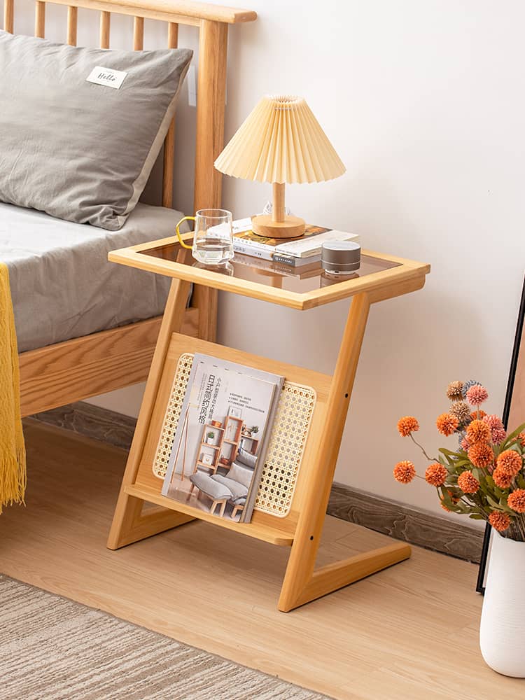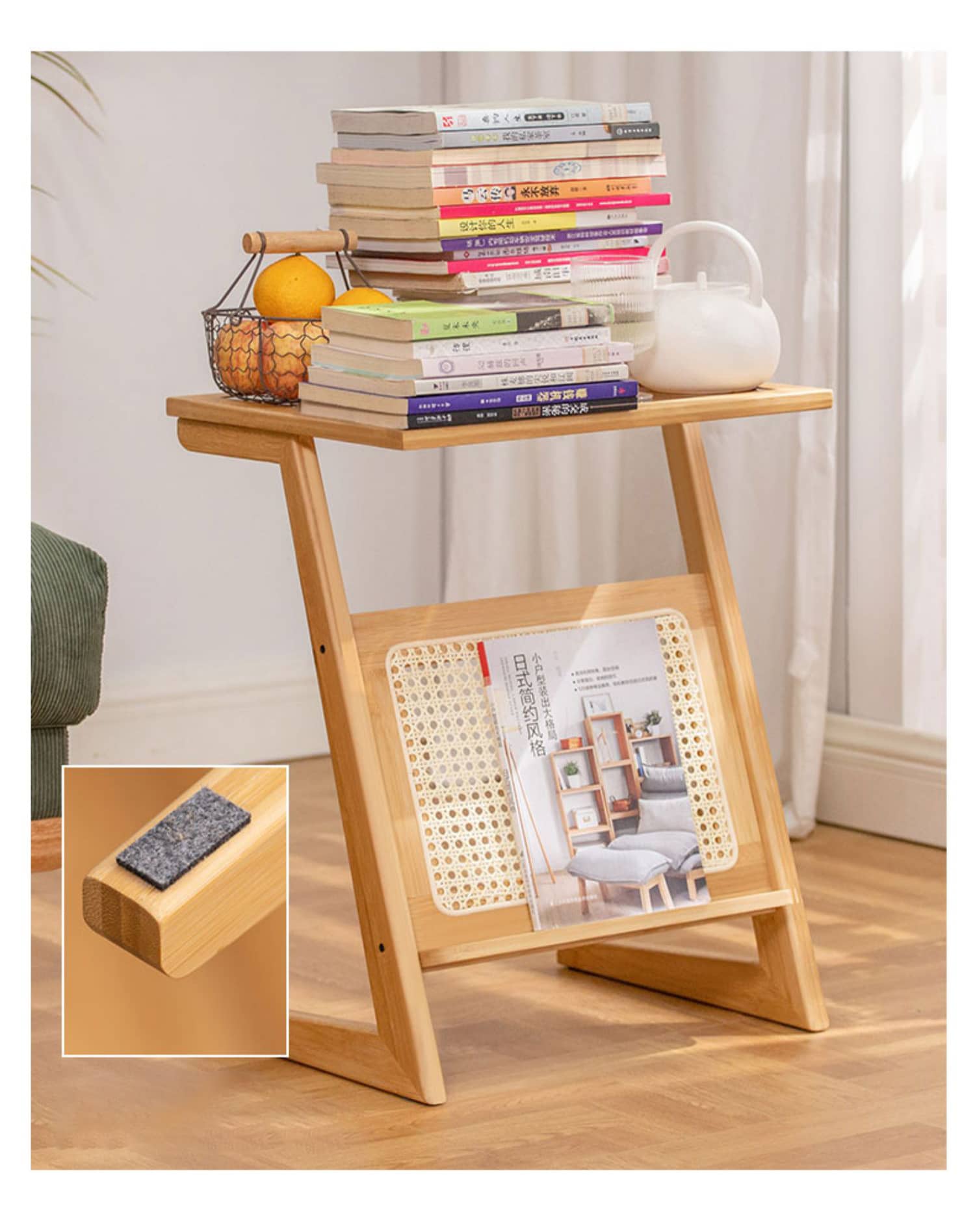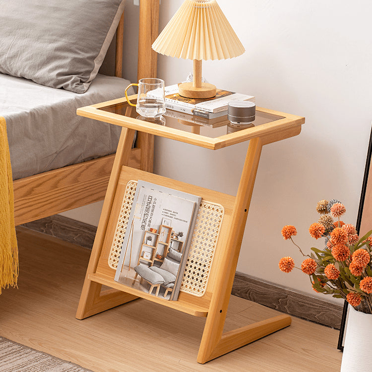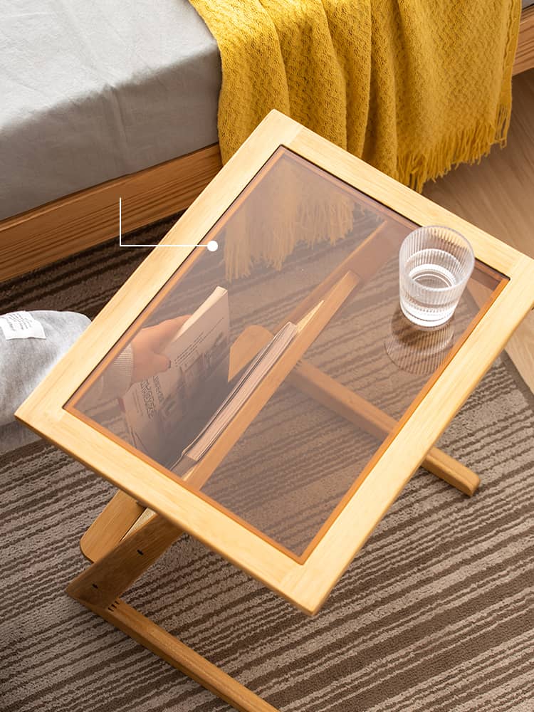Stunning Natural Wood Tea Table with Intricate Bamboo and Rattan Weaving - Reeded Glass Top in Elegant Brown Grey hsl-84