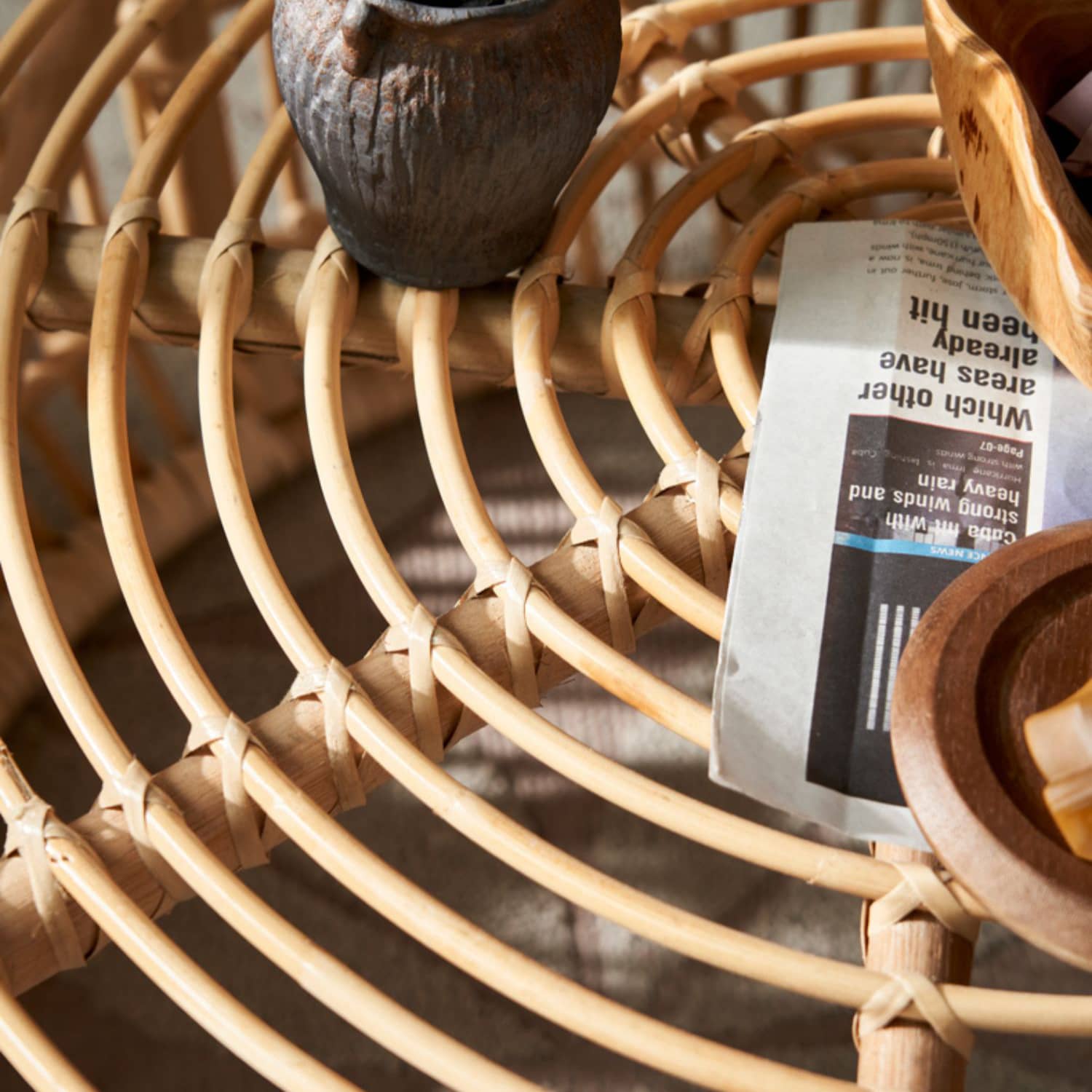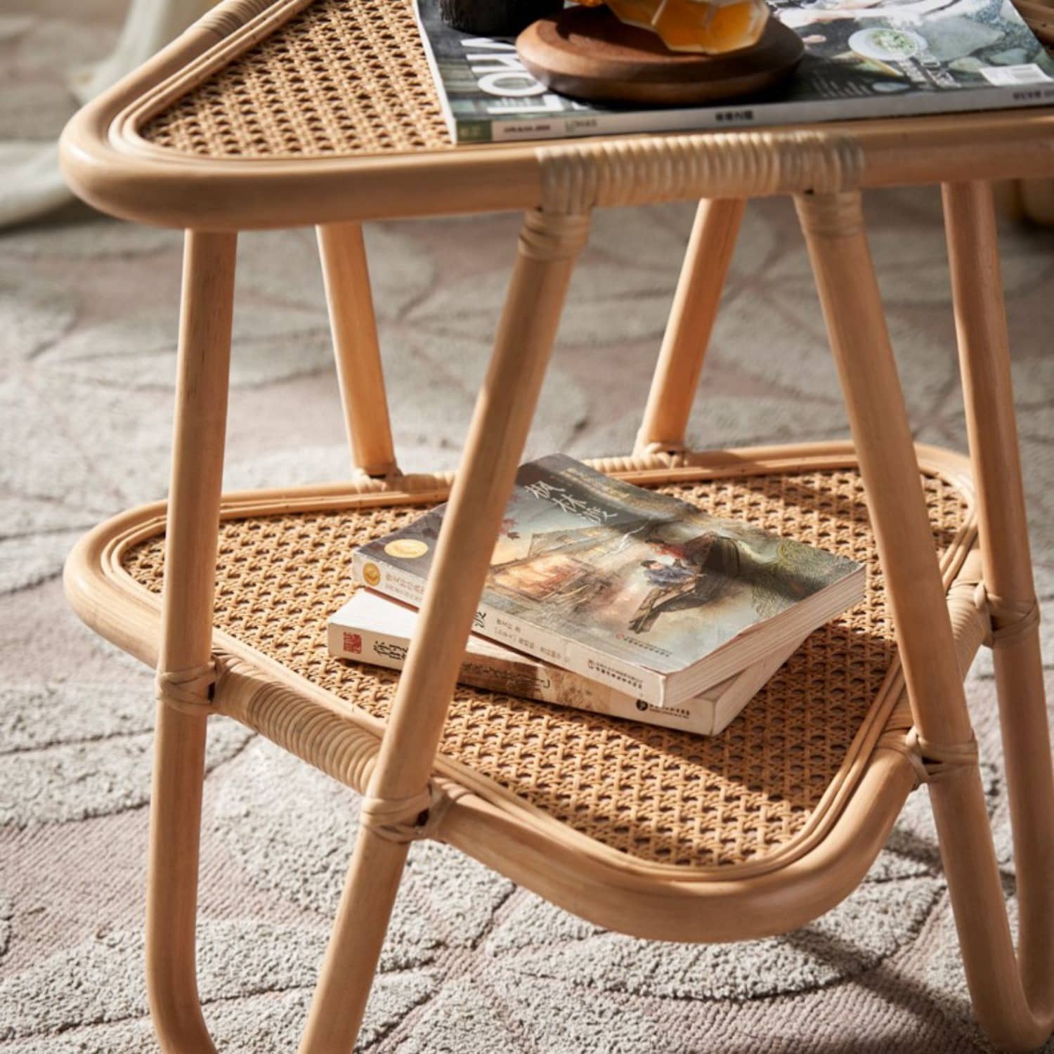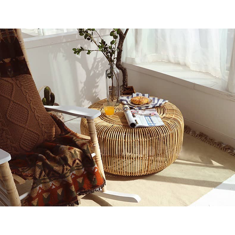 Natural Wood and Rattan Tea Table – Elegant and Durable Design htzm-1528