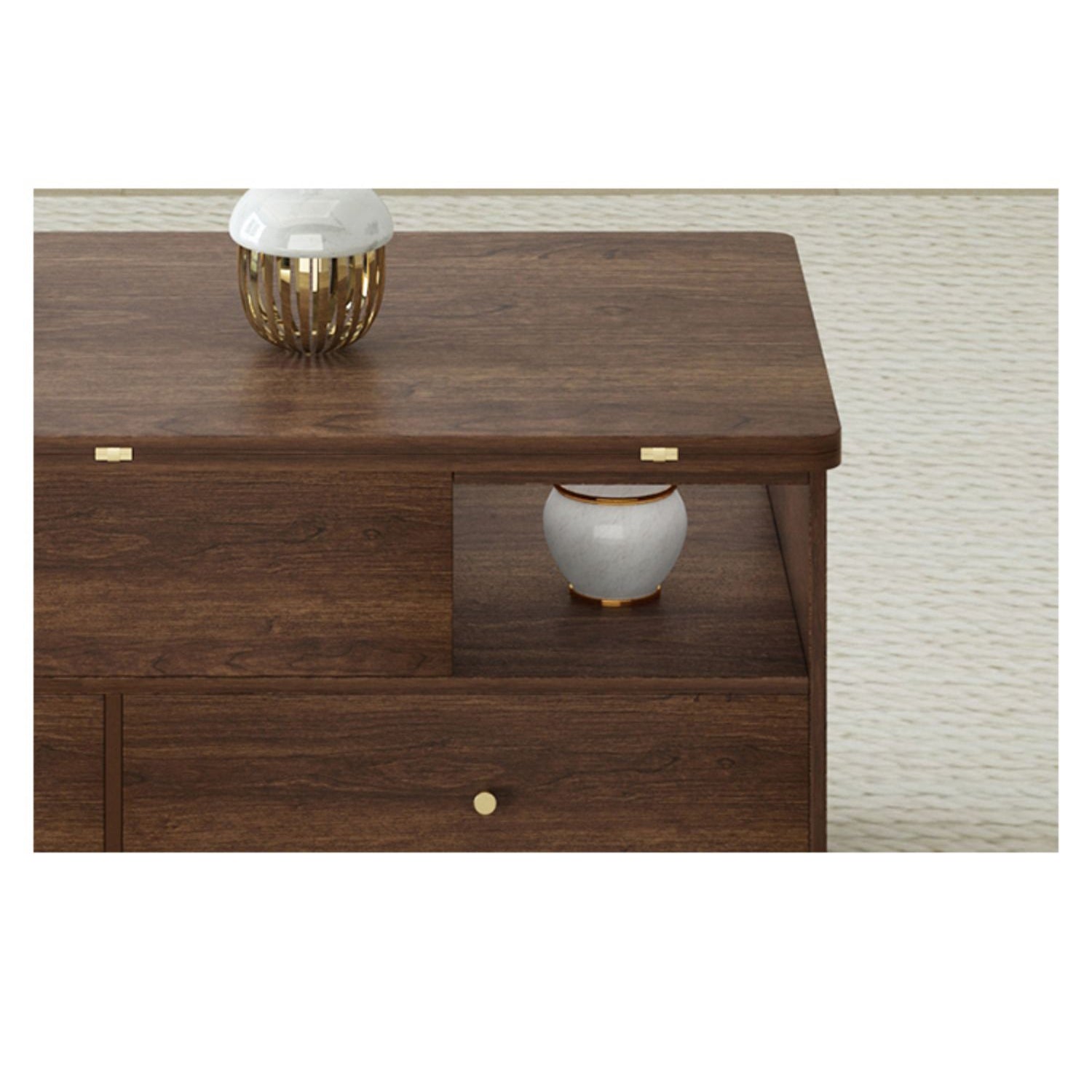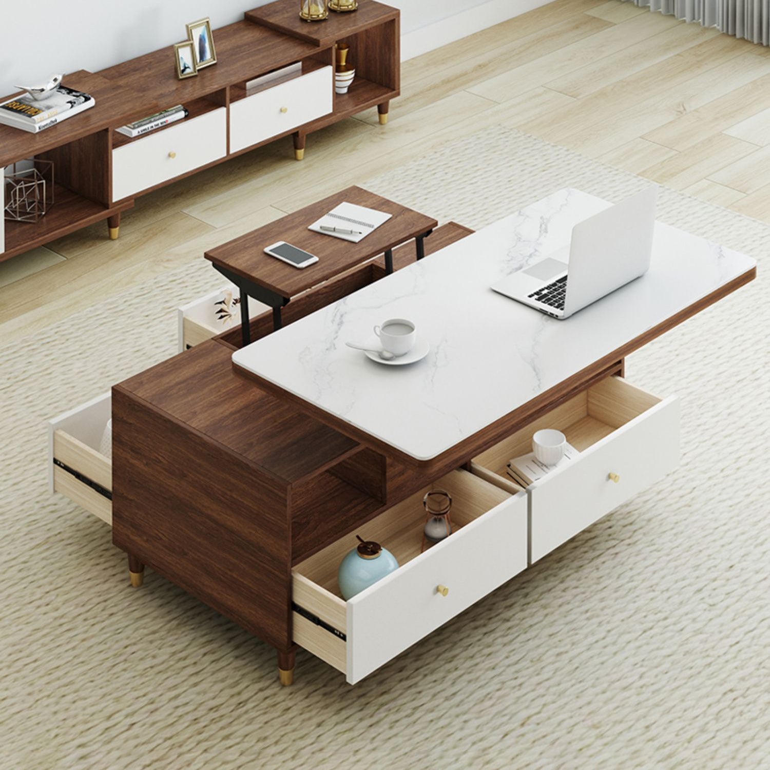 Elegant Solid Wood Tea Table with Ceramic Top - Brown, White & Black hx-1569