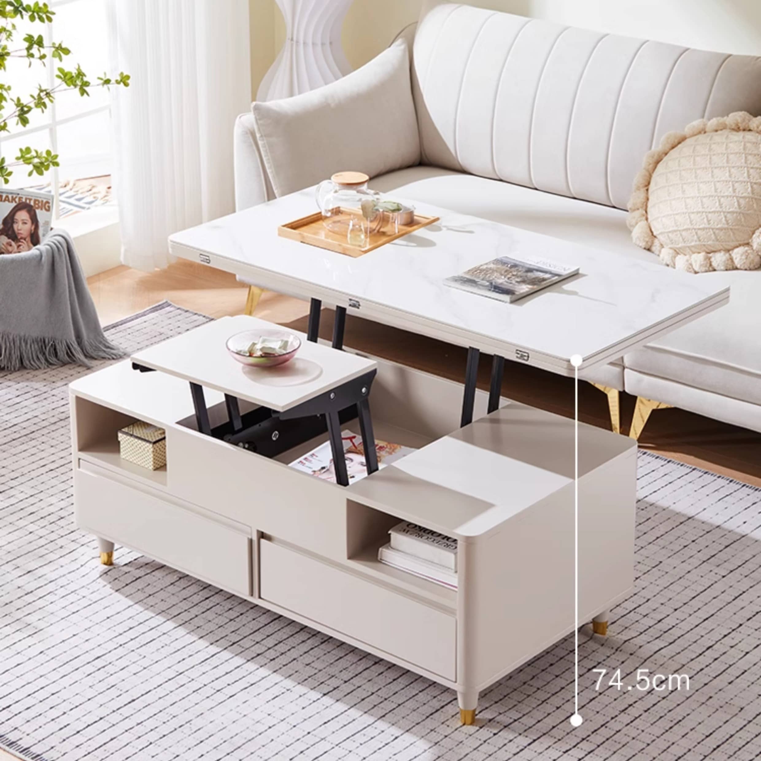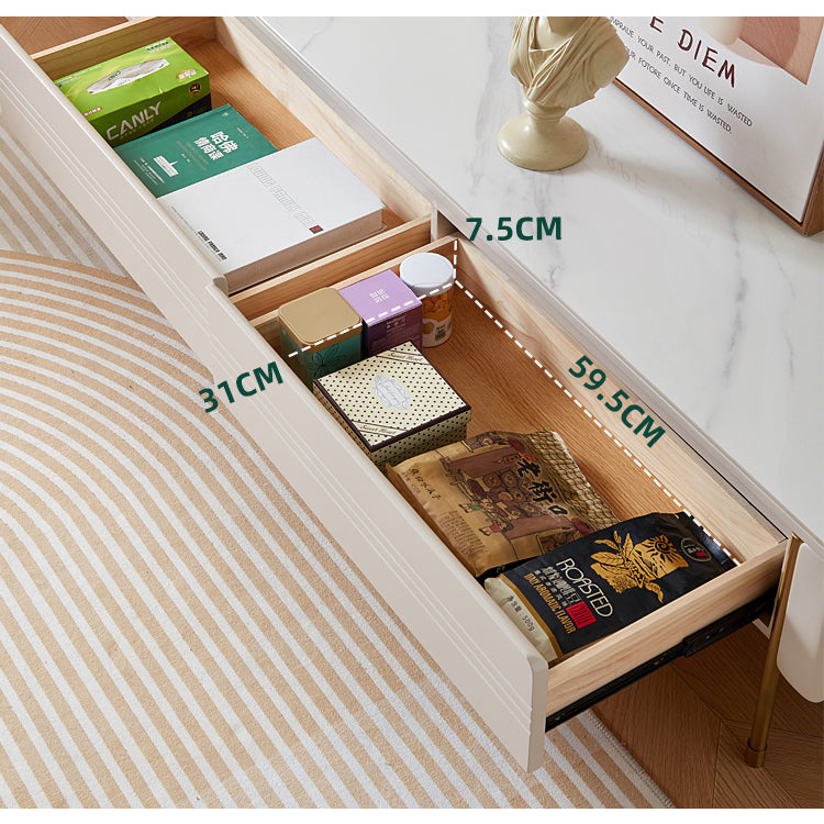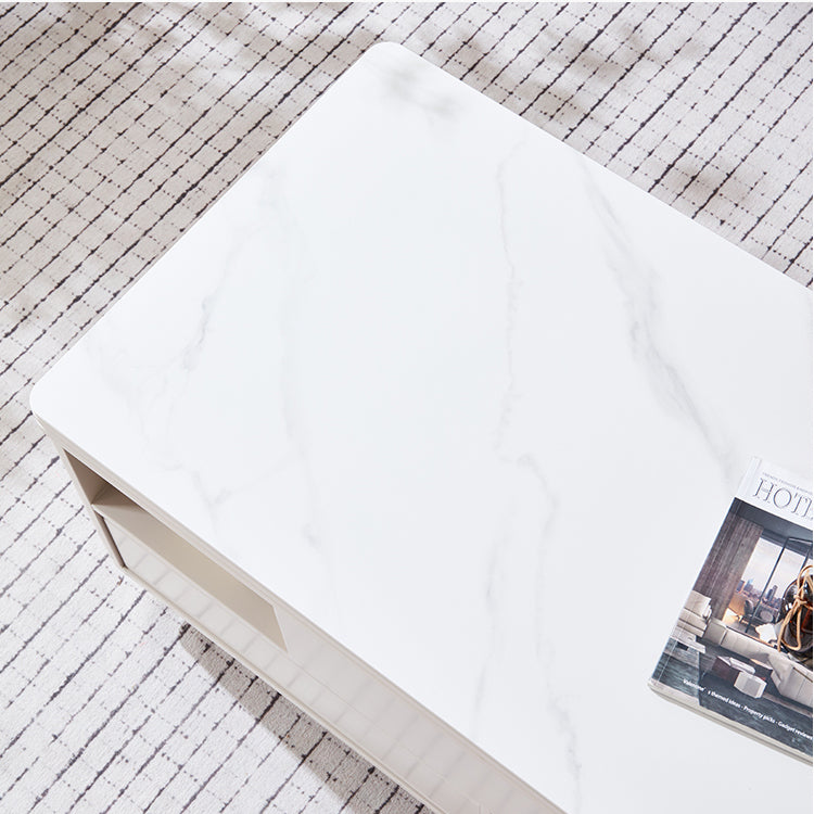 Elegant White Beige Oak Wood Tea Table with Ceramic Top – Stylish & Durable hx-1575