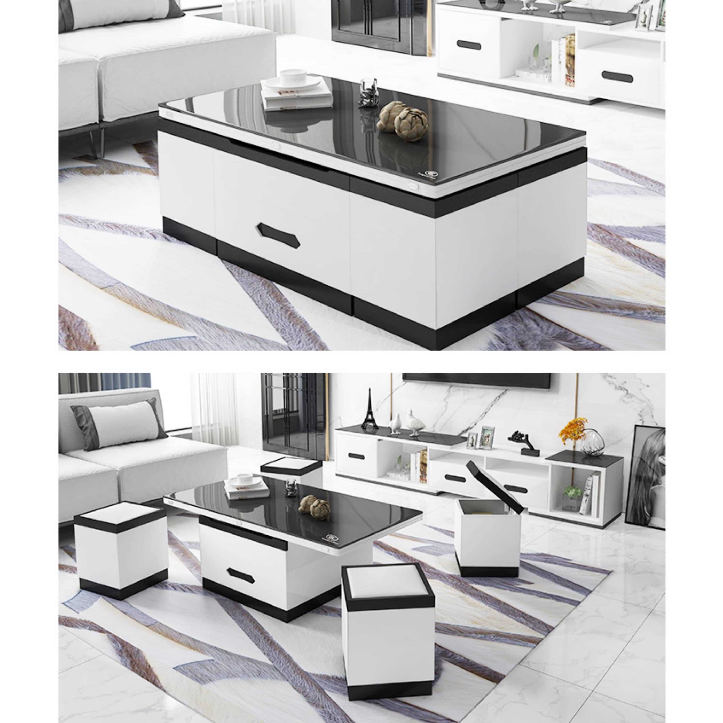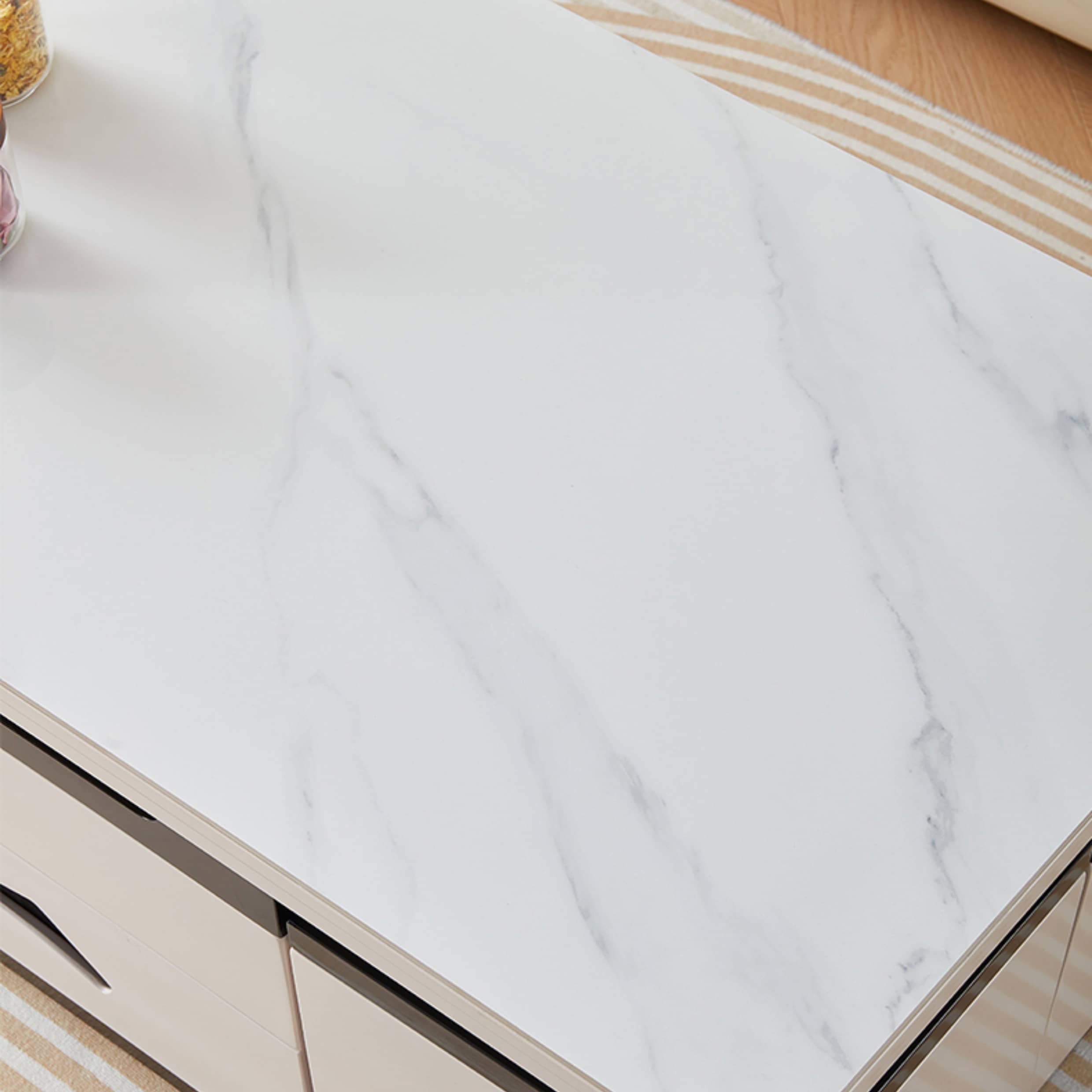 Modern White Ceramic Tea Table with Luxurious Faux Leather Accents hx-1578