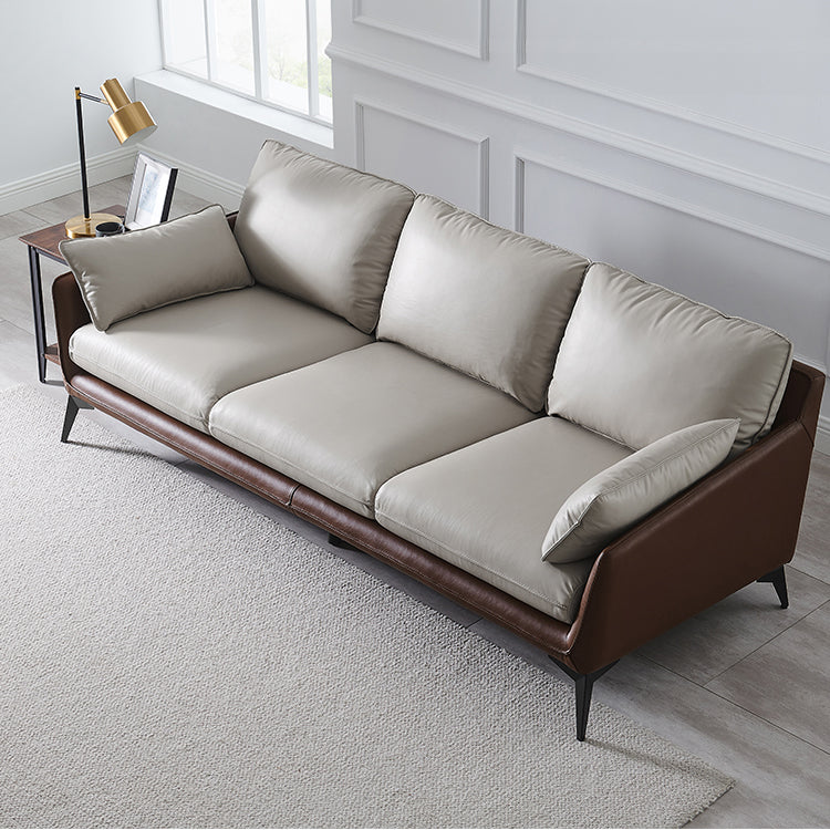 Modern Camel Brown Faux Leather Sofa with Light Gray Cotton Cushions and Birch Wood Frame hxcyj-1336