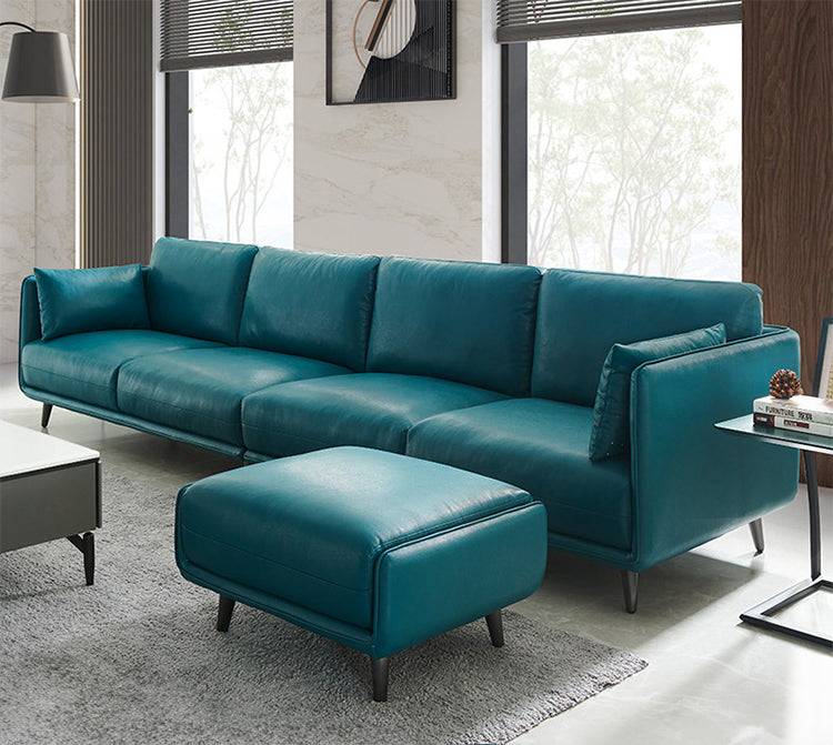 Stylish Faux Leather Sofa with Solid Wood Frame - Orange, Light Blue, Dark Brown Options hxcyj-1348