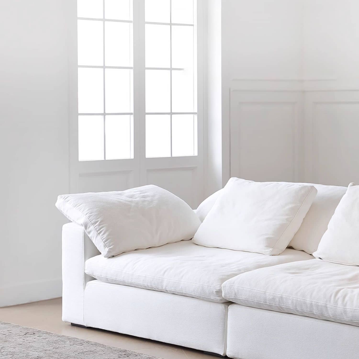 Luxury Cotton-Ramie White Sofa with Down & Silk Floss Cushions - Available in Brown, Dark Blue, and Black my-357