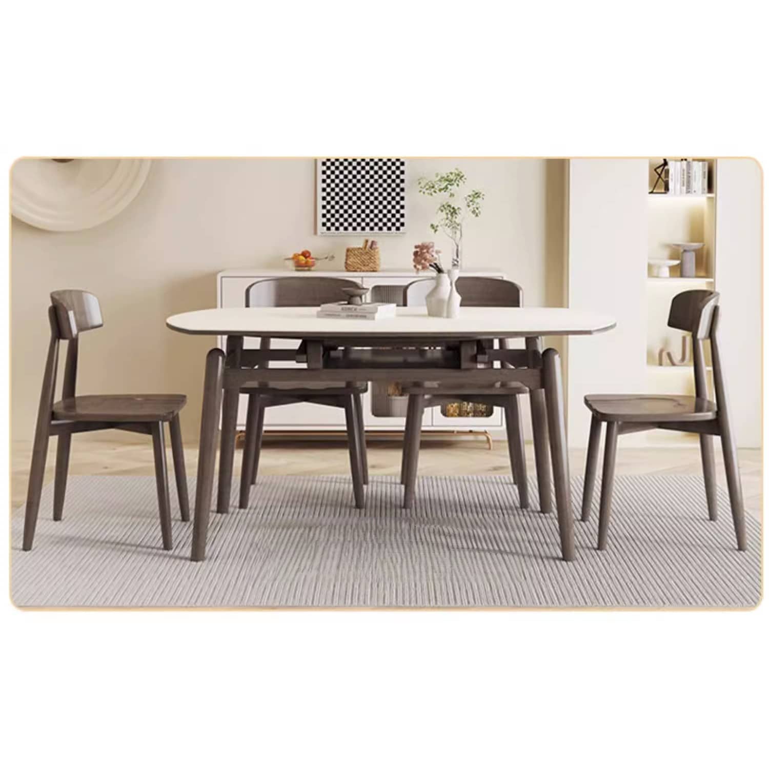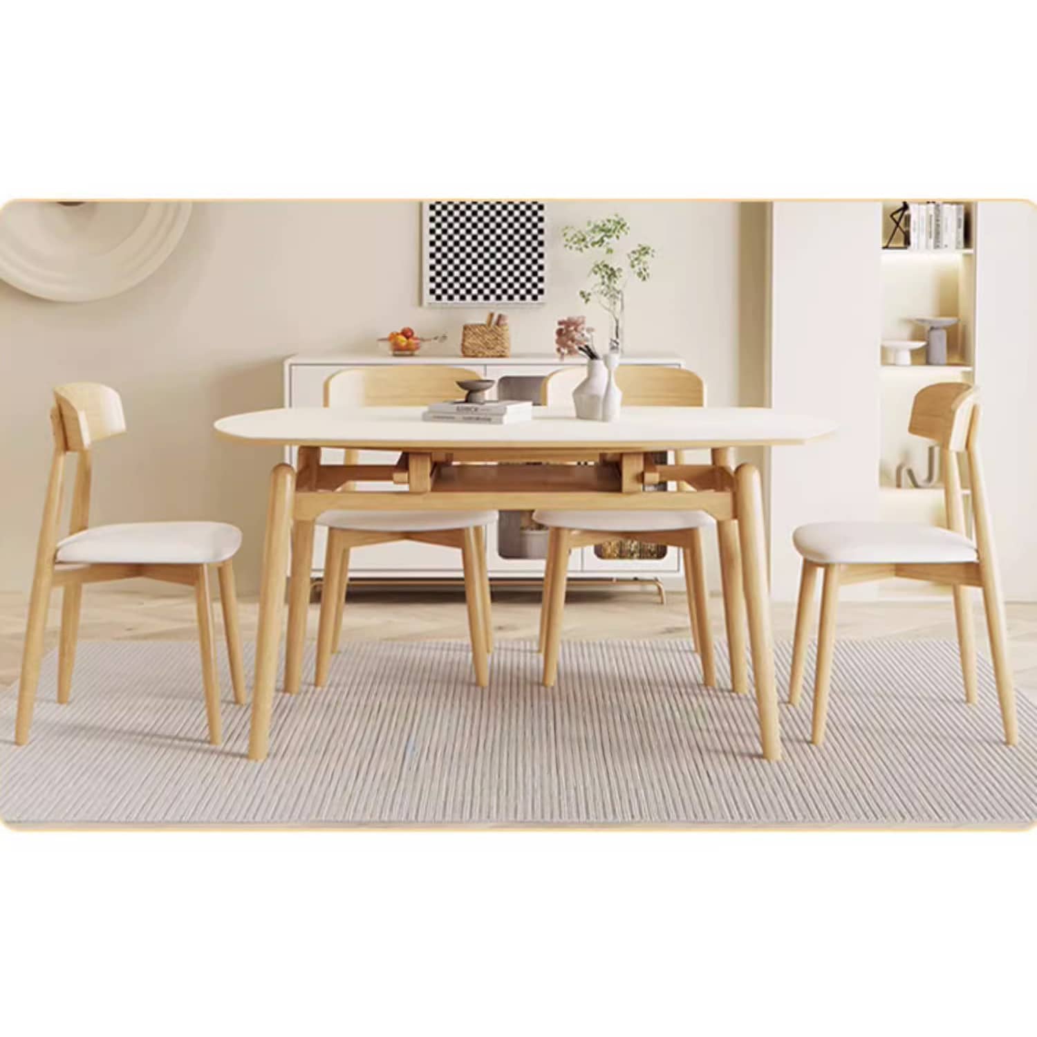 Elegant White Rubber Wood Dining Table with Durable Sintered Stone Top ybn-391