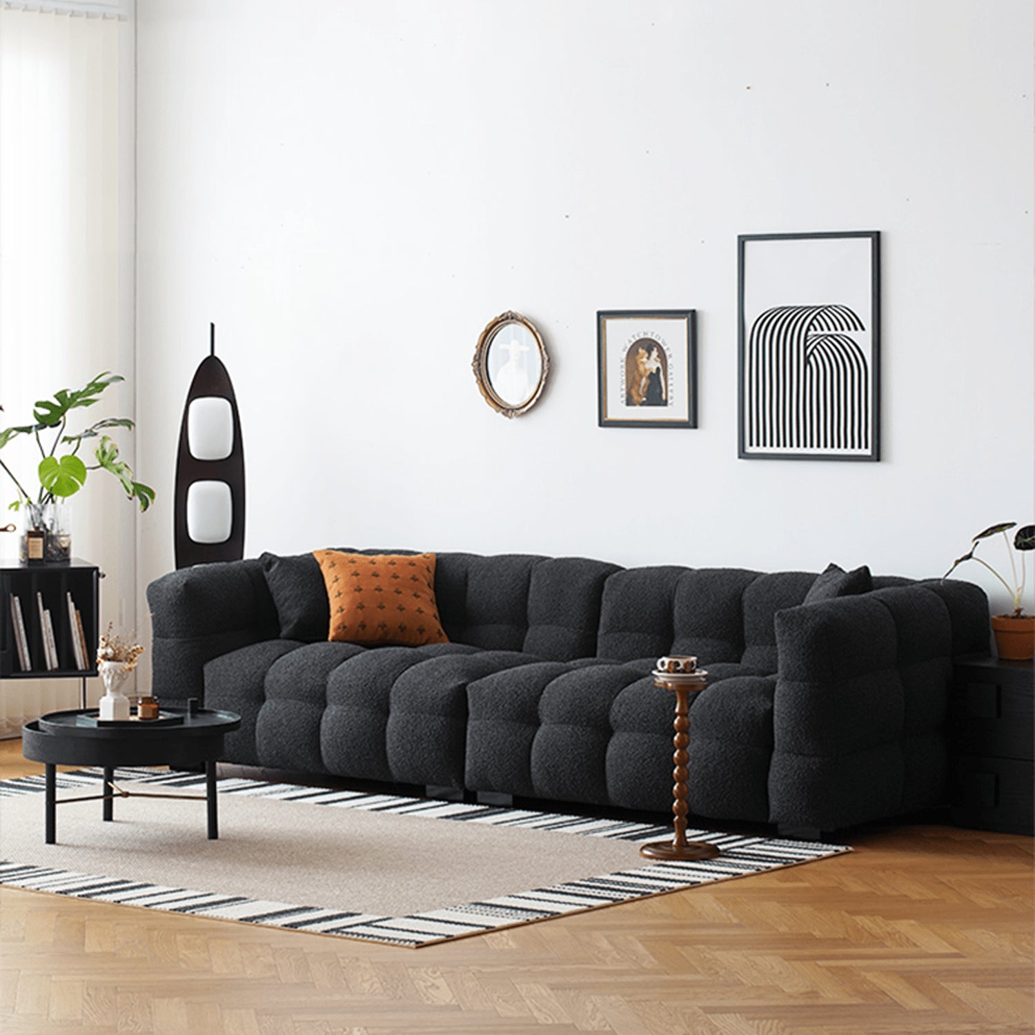 Modern Sofa with Black Faux Lambswool and White Pine Frame yw-218